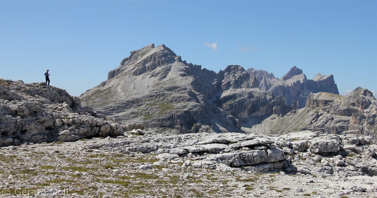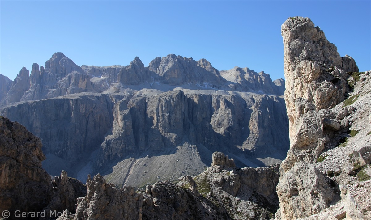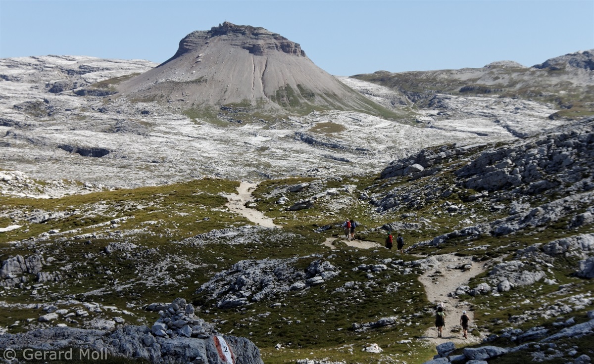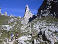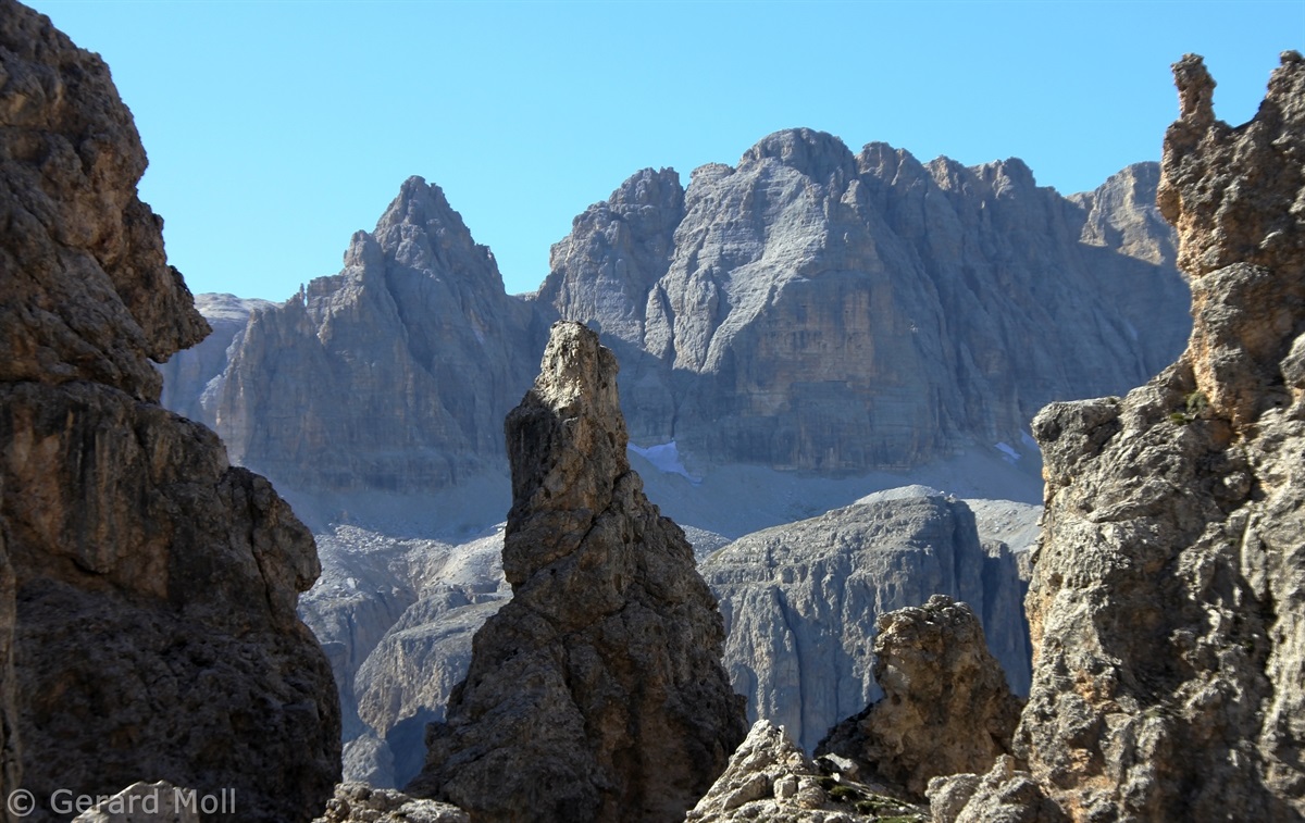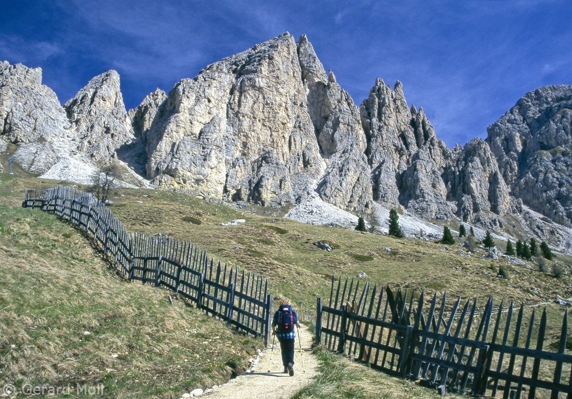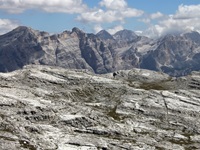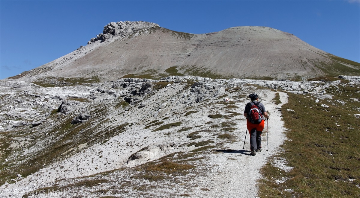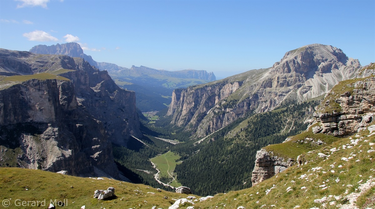 Wir sind von Stern mit dem Bus zum Grödnerjoch (2121 m) gefahren und an wilden Felstürmen vorbei zum Crespeinajoch (2528 m) gewandert. Über die phantastische Hochfläche sind wir über das Ciampeijoch zur Puezhütte (2475 m) gelangt. Über Muntejela (2666 m) und Piza de Gherdenacia (2668 m) wurde die Tour bis zur Gardenaciahütte (2050 m) fortgesetzt, von wo aus wir nach Stern (1416 m) abgestiegen sind.