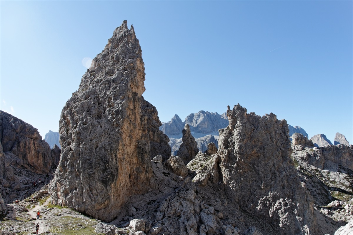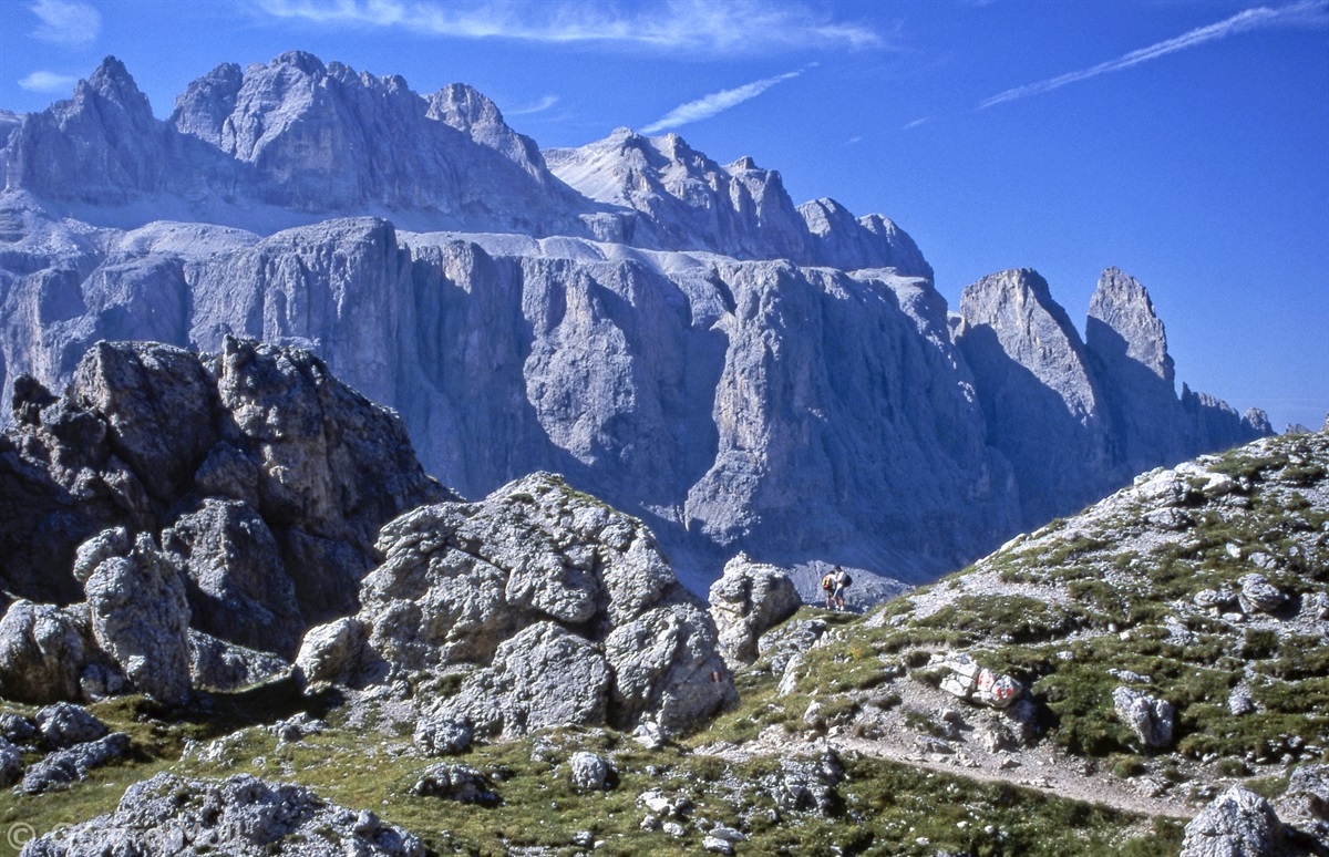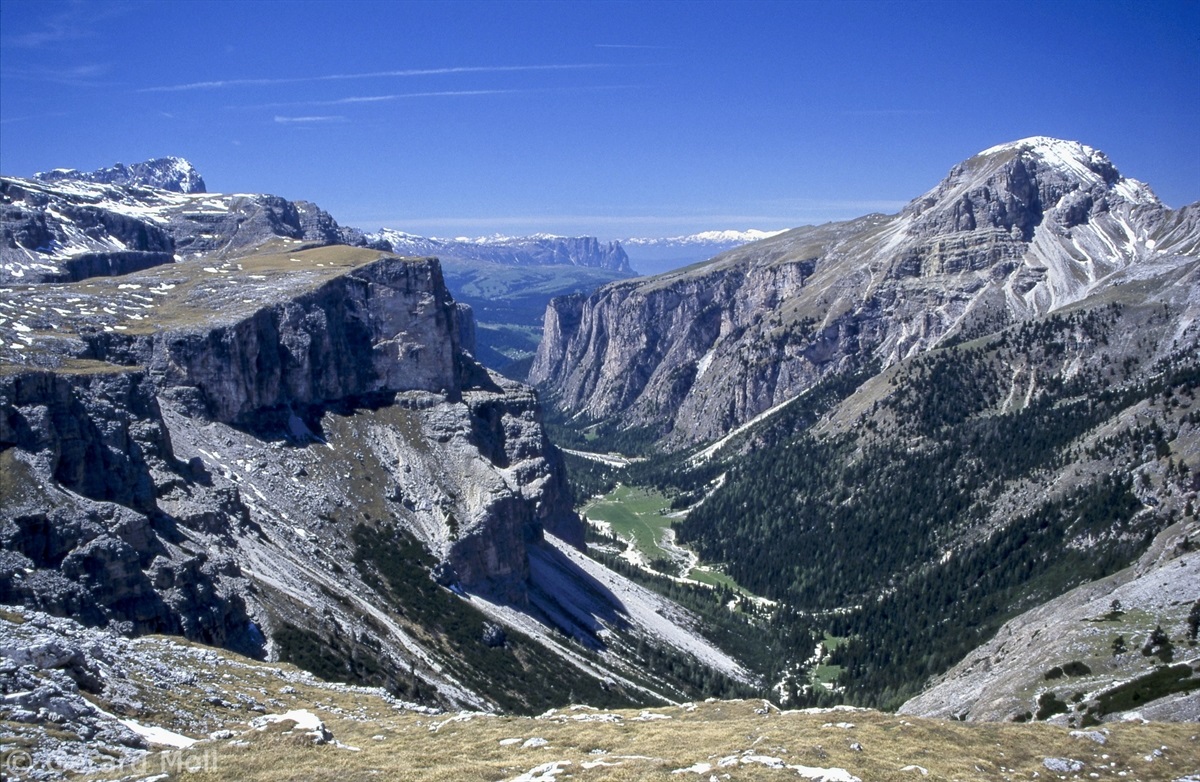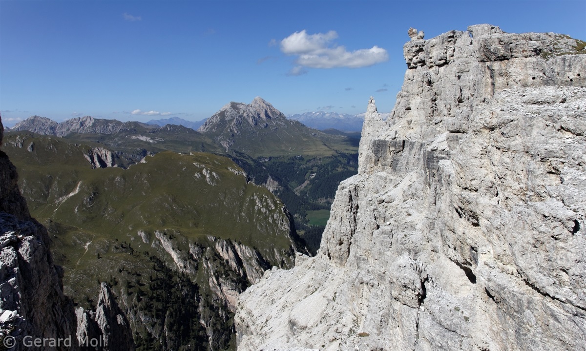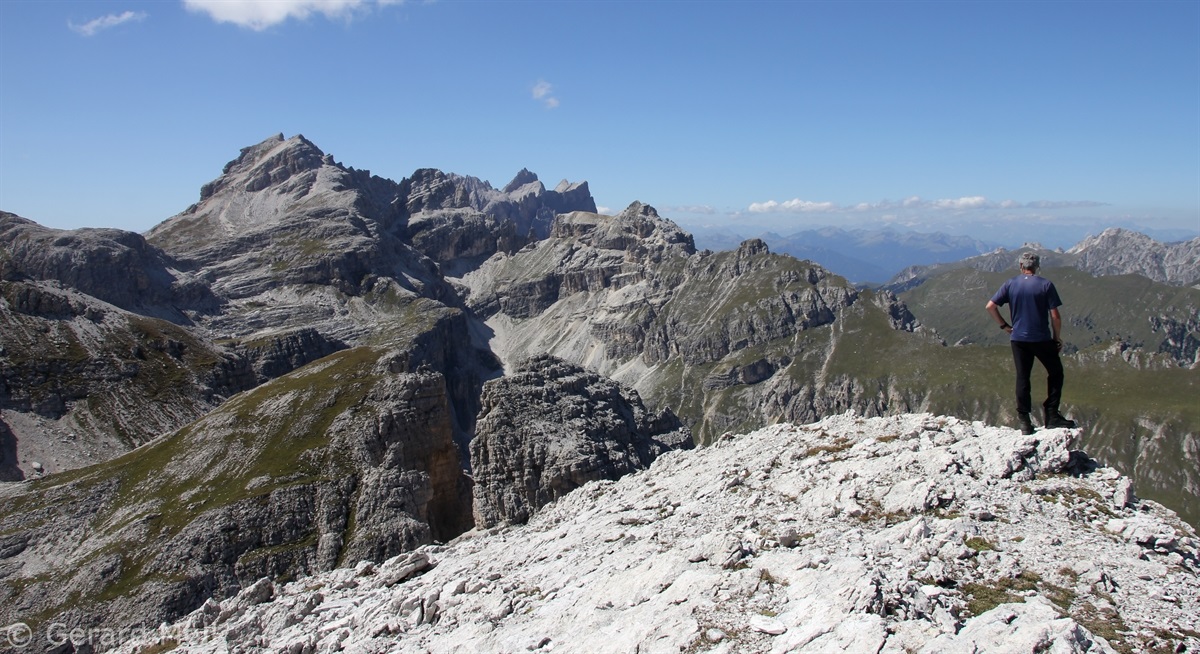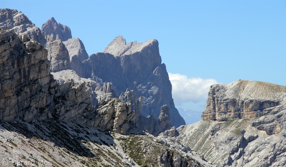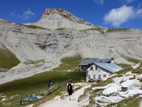 Wir sind von Stern mit dem Bus zum Grödnerjoch (2121 m) gefahren und an wilden Felstürmen vorbei zum Crespeinajoch (2528 m) gewandert. Über die phantastische Hochfläche sind wir über das Ciampeijoch zur Puezhütte (2475 m) gelangt. Über Muntejela (2666 m) und Piza de Gherdenacia (2668 m) wurde die Tour bis zur Gardenaciahütte (2050 m) fortgesetzt, von wo aus wir nach Stern (1416 m) abgestiegen sind.
