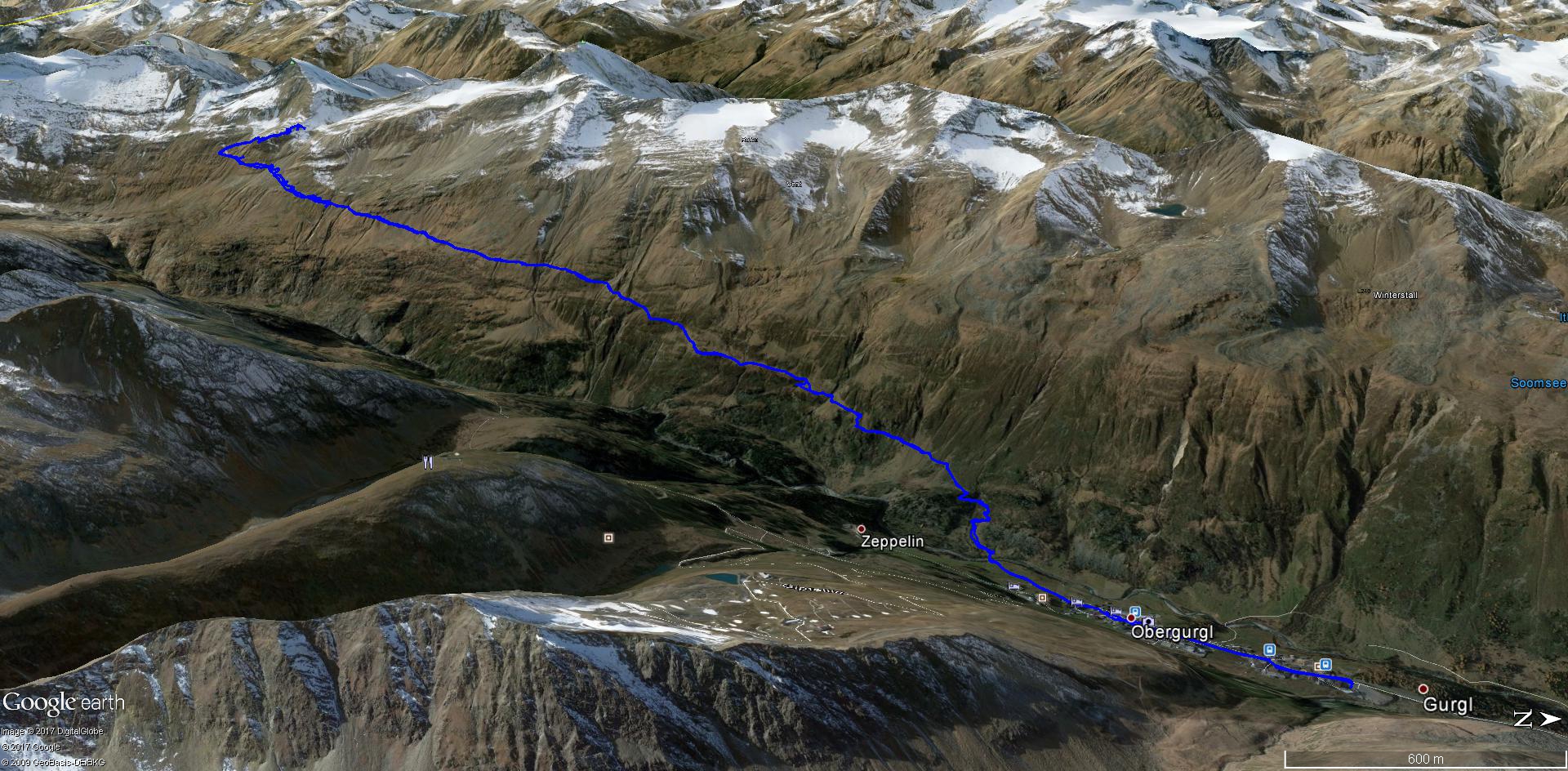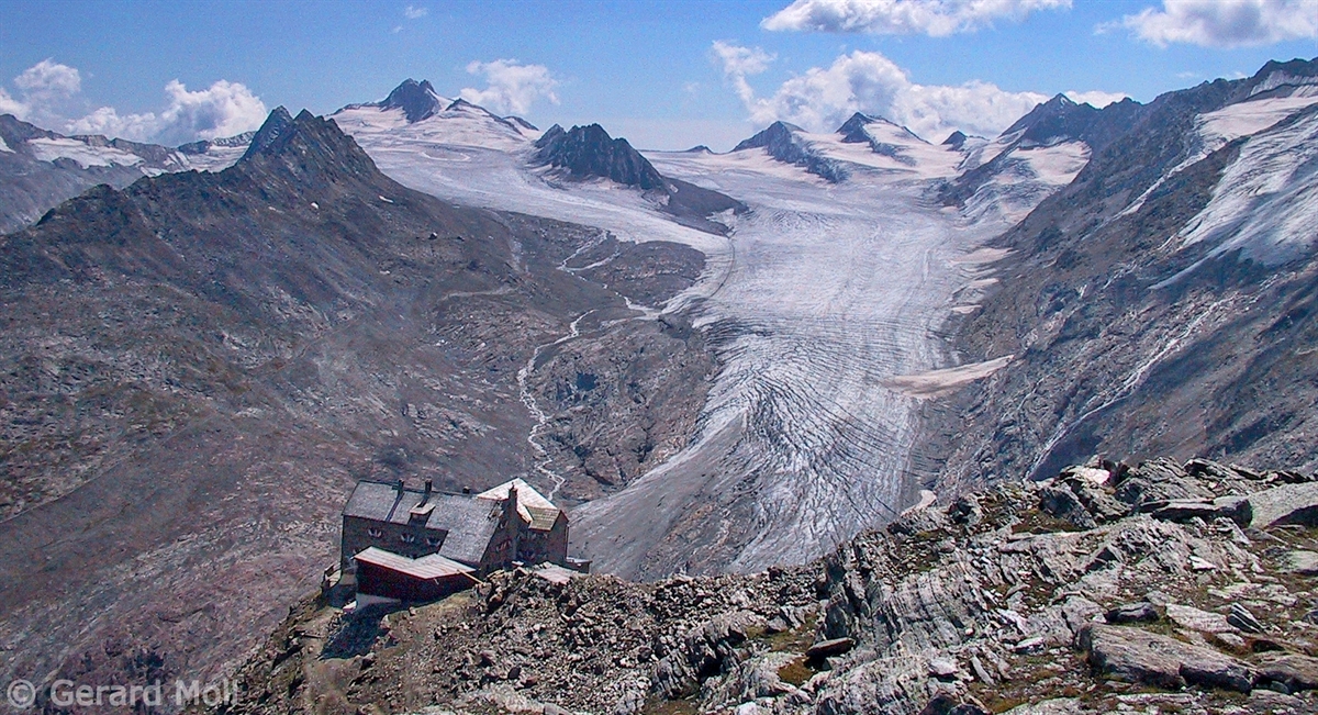 Der lange Weg zum Ramolhaus beginnt in Obergurgl (1907 m). Über Moränenrücken führt der Ramolweg bis zum Ramolhaus auf 3006 m.