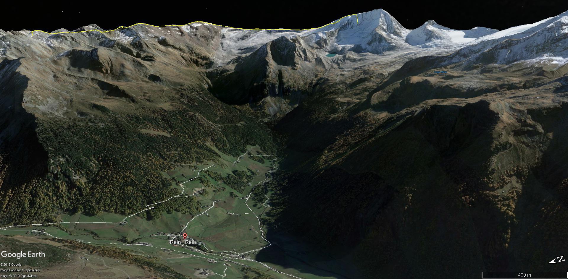 Umrahmt von den Bergen der Rieserferner- und der Durreck-Gruppe liegt der Ort Rein am Ende des Reintales. Das Reintal zweigt in Sand in Taufers in nordöstlicher Richtung vom Tauferer Tal ab.