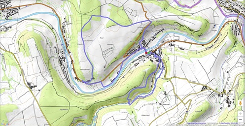 Vom Parkplatz führt uns der Weg R4 zuerst zur Nikolauskapelle und an der Sauer entlang. Dann geht es auf die Anhöhen nördlich über Reisdorf und wieder hinunter zum Ort. Der Weg R2 leitet uns zunächst  auf die Anhöhen südlich von Reisdorf. Nach dem Überqueren der Strasse hilft uns eine Brücke über die Weisse Ernz, deren Lauf wir zurück nach Reisdorf folgen,