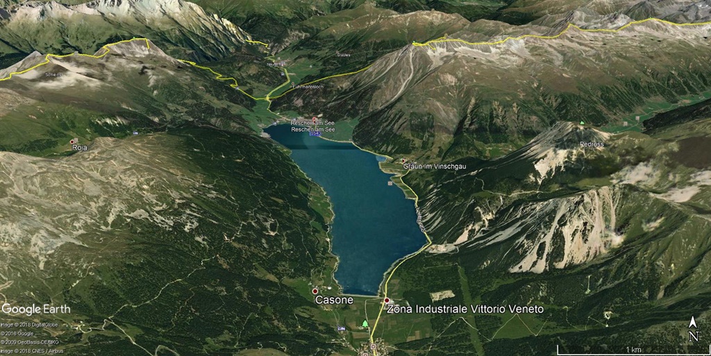 Reschen (Resia All'Adige ) 1508 m - Graun (Curon Venosta ) 1520 m