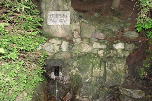 Bild in Lightbox öffnen (open image in lightbox). Die Etschquelle oberhalb von Reschen, Ursprung des Hauptflusses von Südtirol, der Etsch. Nach 410 km langem Flußlauf mündet sie bei Chioggia in die Adria.