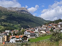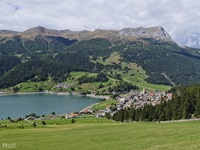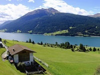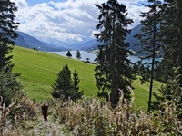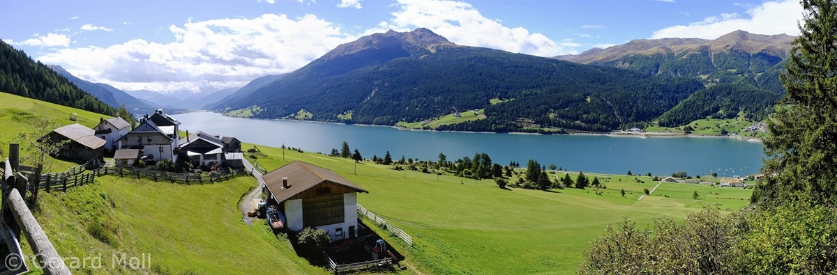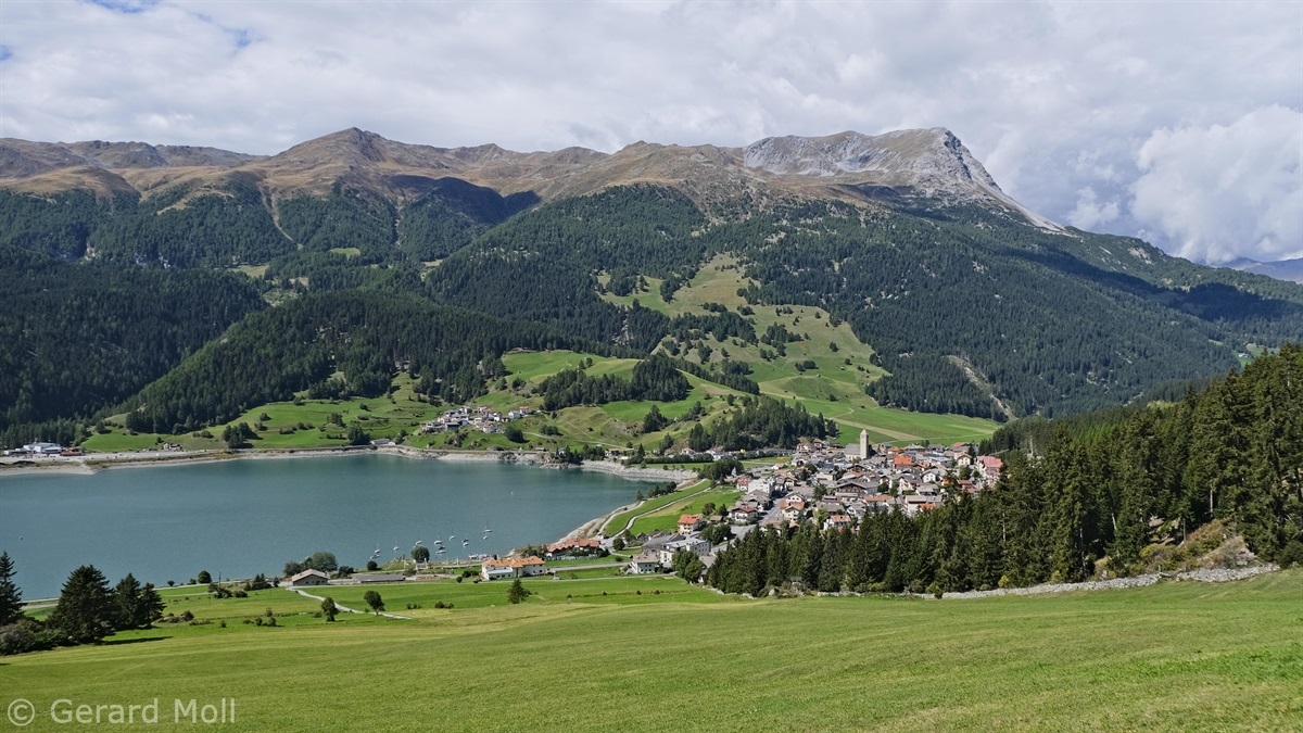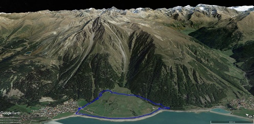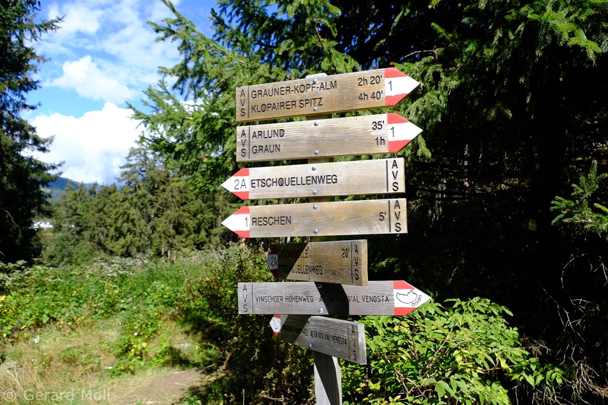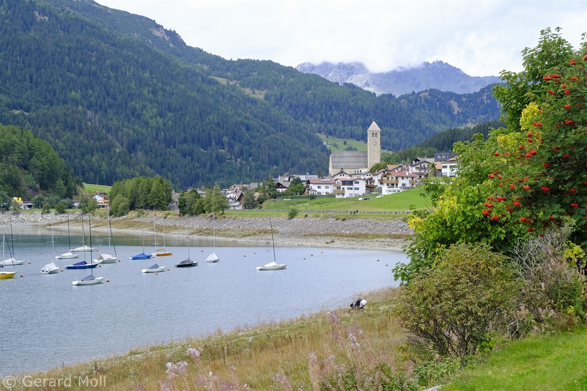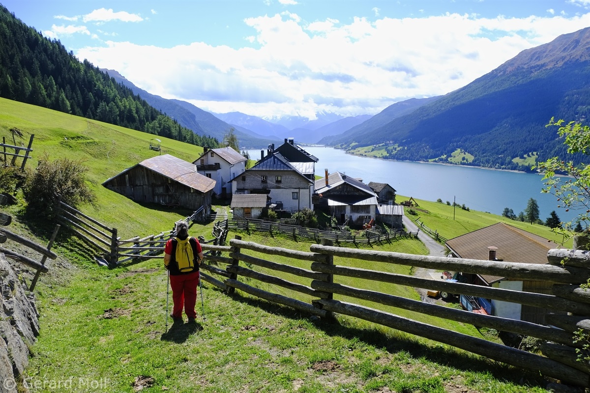Wir haben eine Regenpause genutzt und sind von dem Ort Reschen hinauf zu den Klopairhöfen gewandert. Von dort sind wir zur Reschenstrasse abgestiegen und sind am Reschensee entlang zurück spaziert.