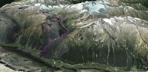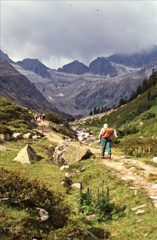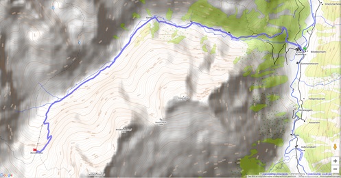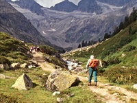 Eine Fahrt mit dem Taxi von Krimml entlang der Krimmler Wasserfälle zum Krimmler Tauernhaus (1631 m) verkürzt den Anstieg. Ein Fahrweg bringt uns zur Materialseilbahn der Hütte (2185 m). Ab hier geht es dann hinauf zur Hütte (2374 m).