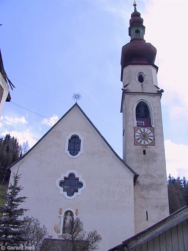 Bild in Lightbox öffnen (open image in lightbox). Der Turm der Pfarrkirche zum hl. Stephan stammt aus dem 15. Jahrhundert, der Kirchenbau aus dem 17. Jahrhundert.