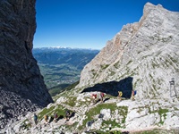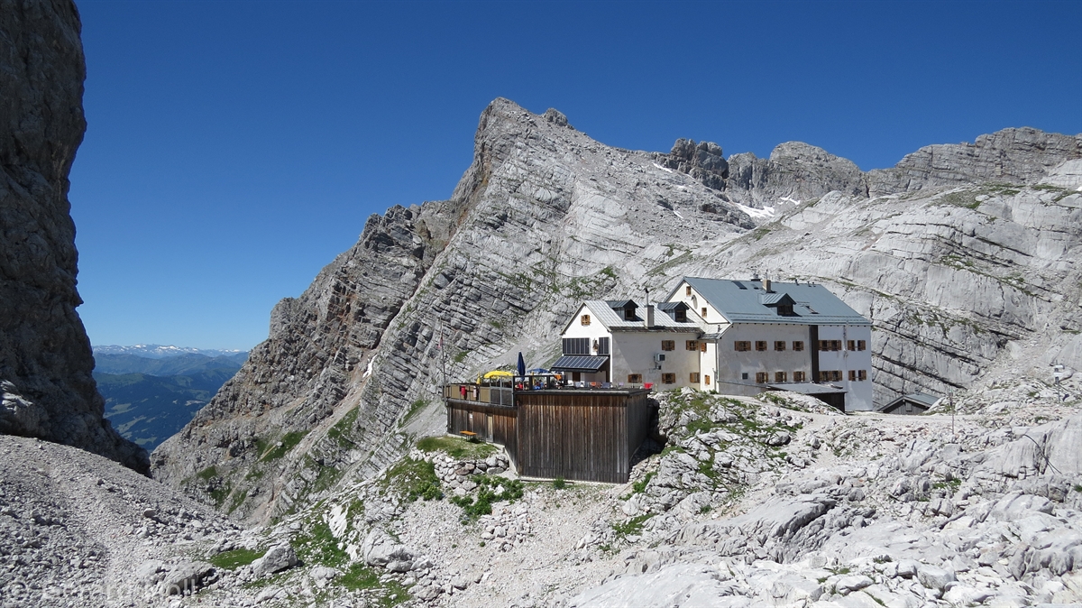 Von Maria Alm Auffahrt zum Parkplatz auf 1107 m. Von hier führt ein steiler Steig mit Sicherungen direkt hinauf zu dem herrlich gelegenen Riemannhaus (2177 m) an der Ramseiderscharte.