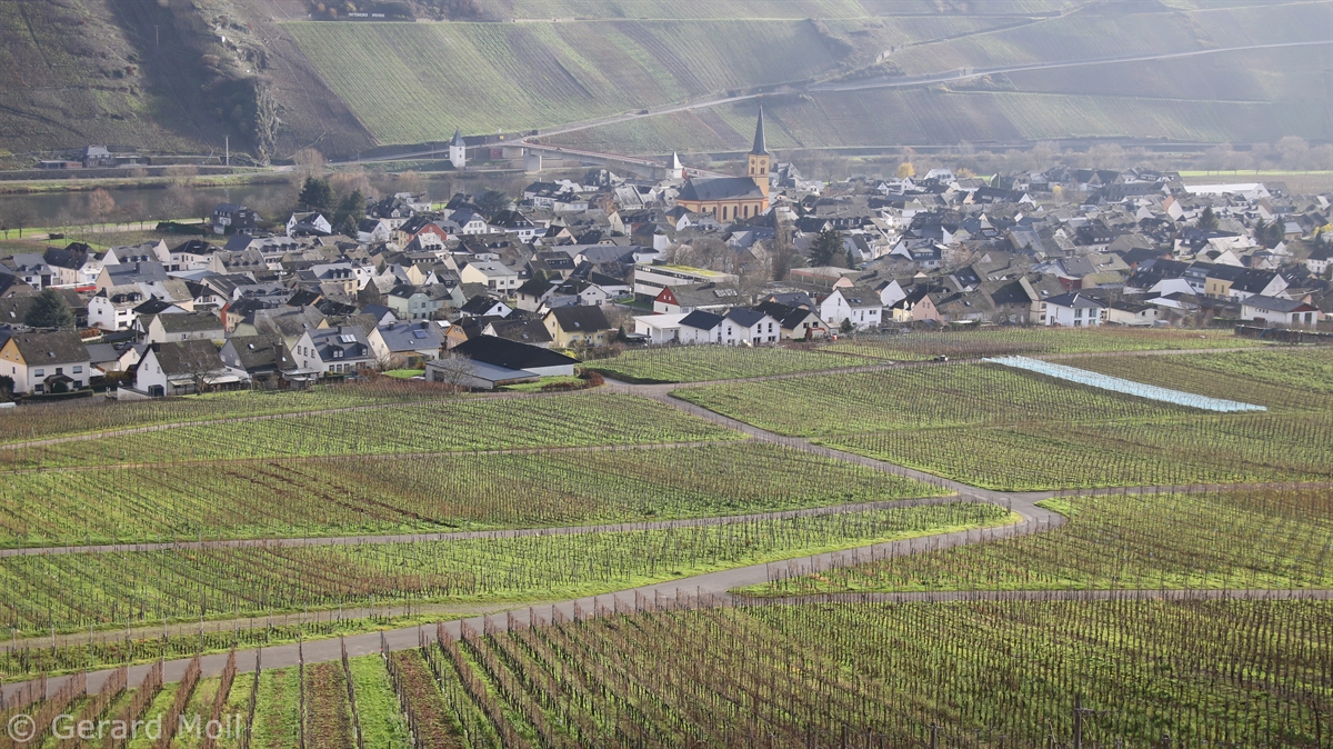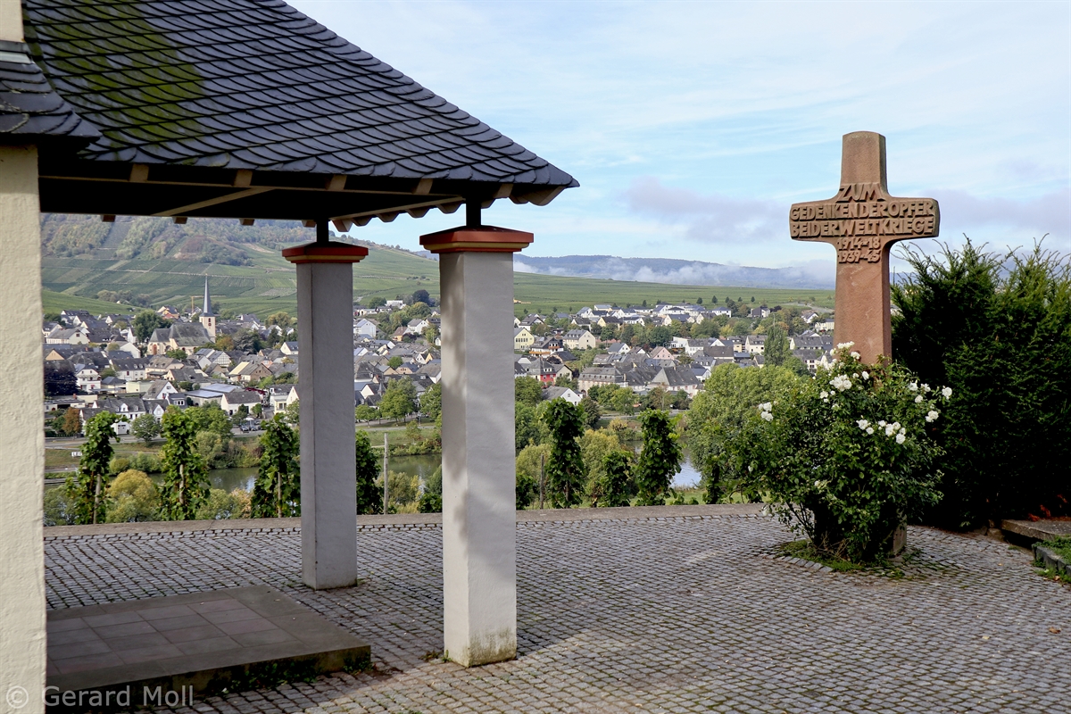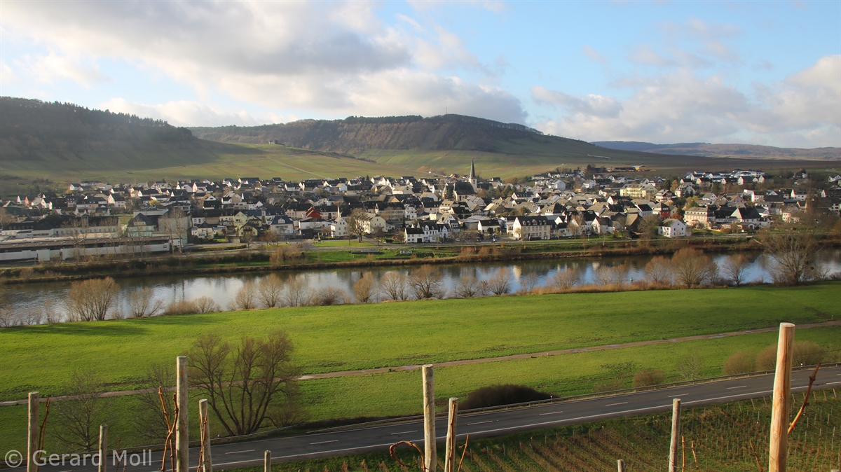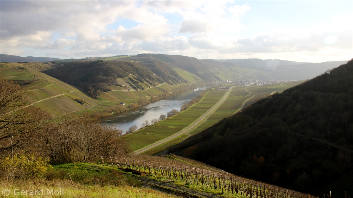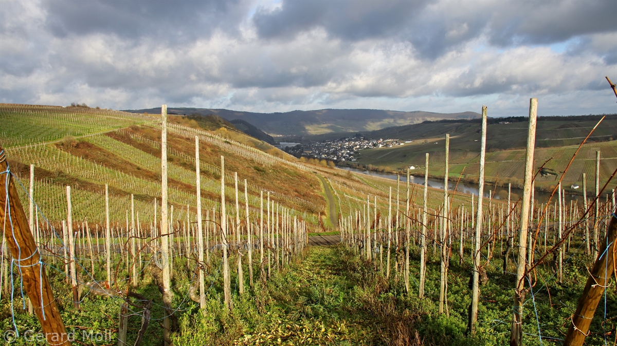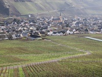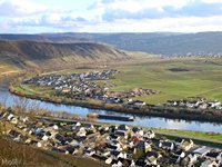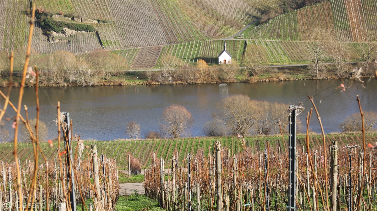 Wir wandern von Trittenheim Richtung Norden entlang der Mosel durch Weinberge, vorbei am alten jüdischen Friedhof, hinauf zur Hochfläche des Neuberges mit seinem Motocrossgelände. Nun geht es westwärts fast hinunter bis Klüsserath. Von dort durch die Klüsserather Weinlagen zum Hinkelstein und weiter zur Laurentiuskapelle bei Trittenheim.