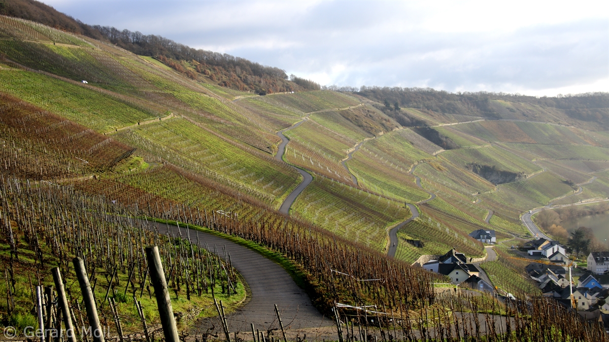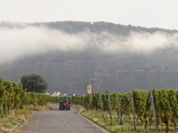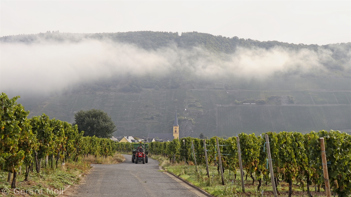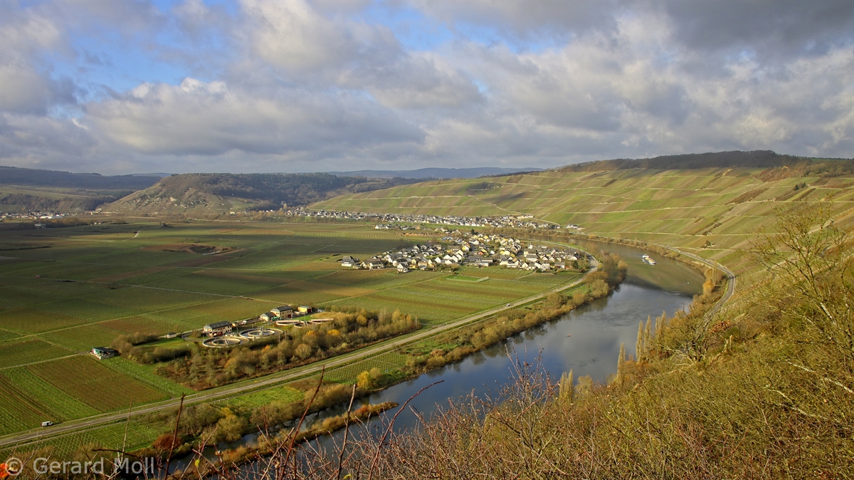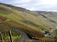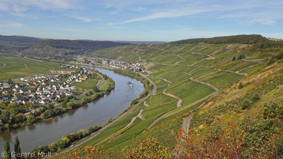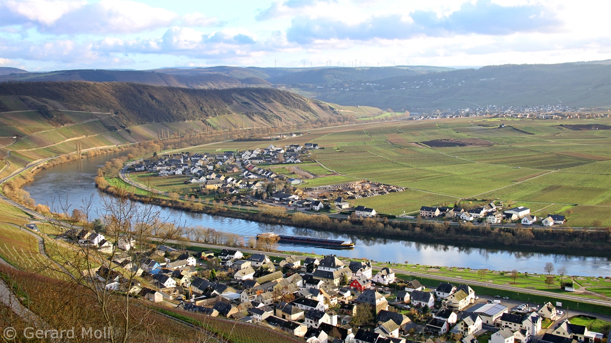 Wir wandern von Trittenheim Richtung Norden entlang der Mosel durch Weinberge, vorbei am alten jüdischen Friedhof, hinauf zur Hochfläche des Neuberges mit seinem Motocrossgelände. Nun geht es westwärts fast hinunter bis Klüsserath. Von dort durch die Klüsserather Weinlagen zum Hinkelstein und weiter zur Laurentiuskapelle bei Trittenheim.