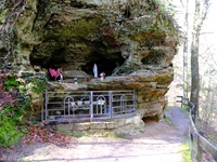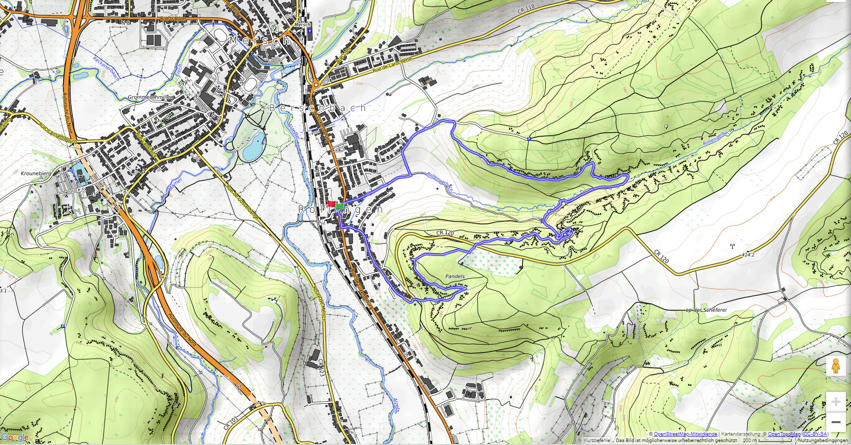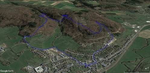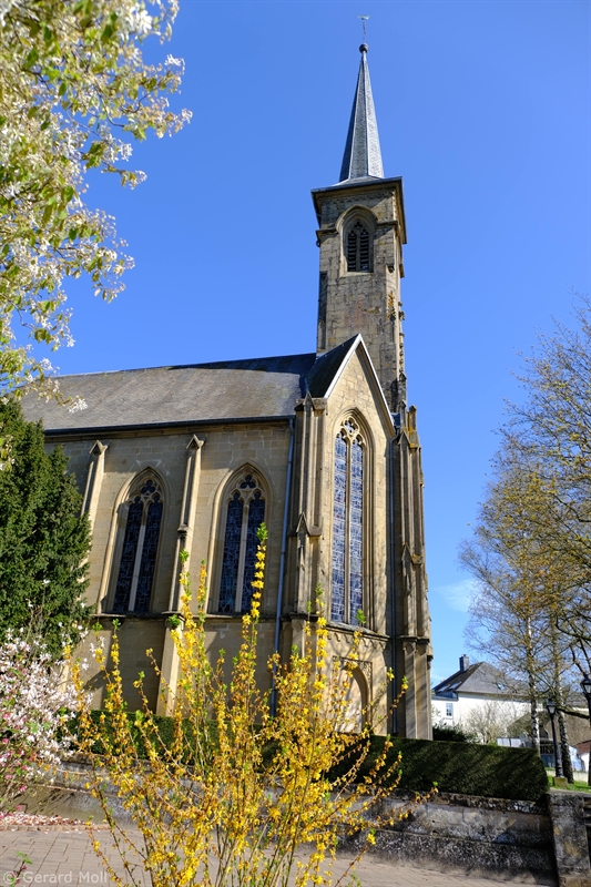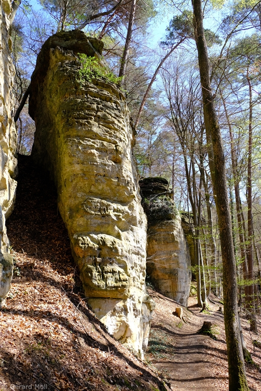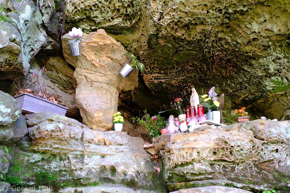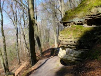 Die Tour ist deckungsgleich mit dem abgeschafften Autopédestre Rollingen. Von der Kirche folgen wir dem Lauf des Rollengerbaachs, dann geht es hinauf auf die Höhe und zu spektakulären Felsen. Nach einem Zwischenabstieg zu einem Weiher geht es hinauf zum "Bildchen" an der Muttergotteslay. Nach der Querung einer Strasse kommen wir zu einem schönen Aussichtspunkt, ehe der Weg hinunter nach Rollingen führt.