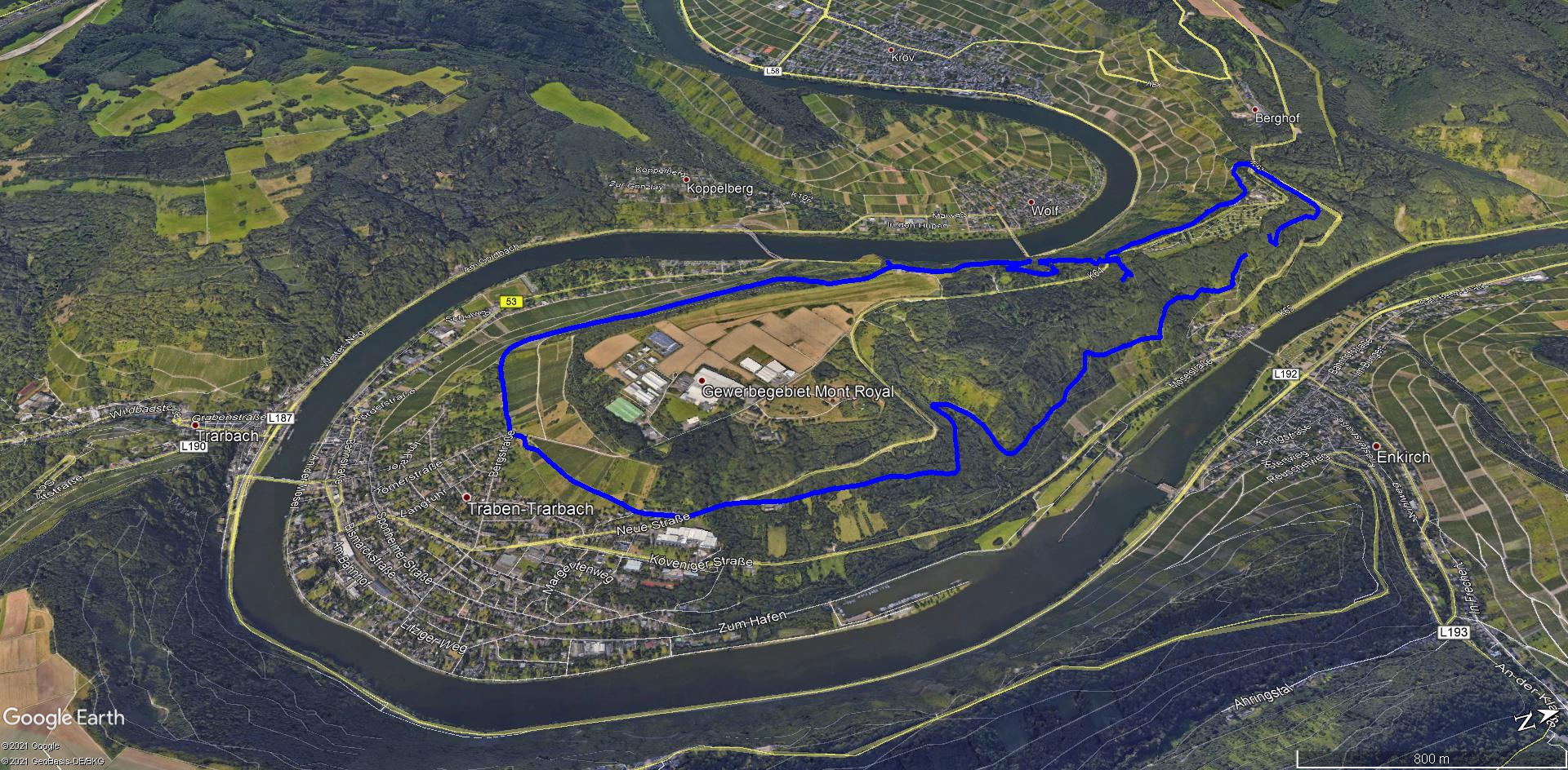 Ende des 17. Jahrhunderts erbaute Vauban, der Festungsbaumeister des französischen Königs Ludwig XIV., auf dem Bergrücken oberhalb von Kröv und Kövenig eine gewaltige Festung. Bereits vor ihrer endgültigen Fertigstellung wurde diese aber auf Grund des Friedensvertrages von Rijswijk wieder geschleift. Wir starten bei der Feriensiedlung auf dem Mont Royal und umrunden den ganzen Berg. Neben den Überresten der Festung und einem kleinen Flugplatz hat die Tour herrliche Blicke über Kröv, Wolf, Traben-Trarbach und Enkirch zu bieten.