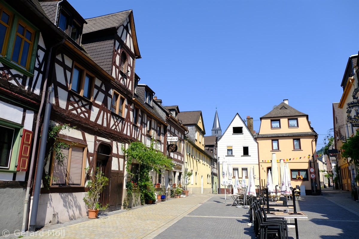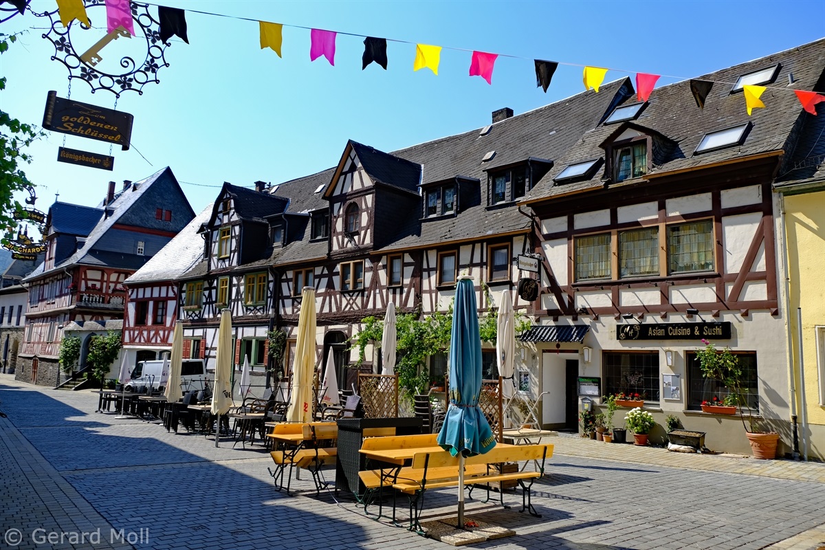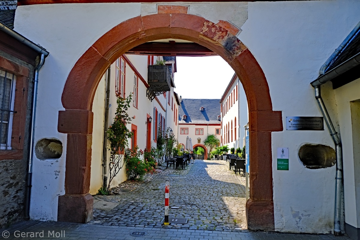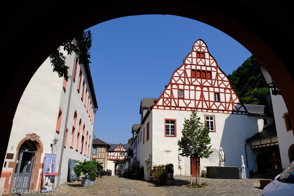 Wir parken am Rheinufer bei dem Rosengarten mit Blick hinauf zur Marksburg, der einzigen unzerstörten Höhenburg am Mittelrhein. Vorbei an prächtigen Rosenbeeten und dem Kriegerdenkmal erreichen wir die Altstadt von Braubach am Fusse des Burgbergs. Unser Weg führt uns weiter zum Obertor, an gut erhaltenen Fachwerkhäusern vorbei zur Barbarakirche und letztlich zum Schloss Philippsburg, das heute das Europäische Burgeninstitut beheimatet.