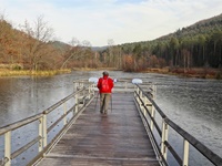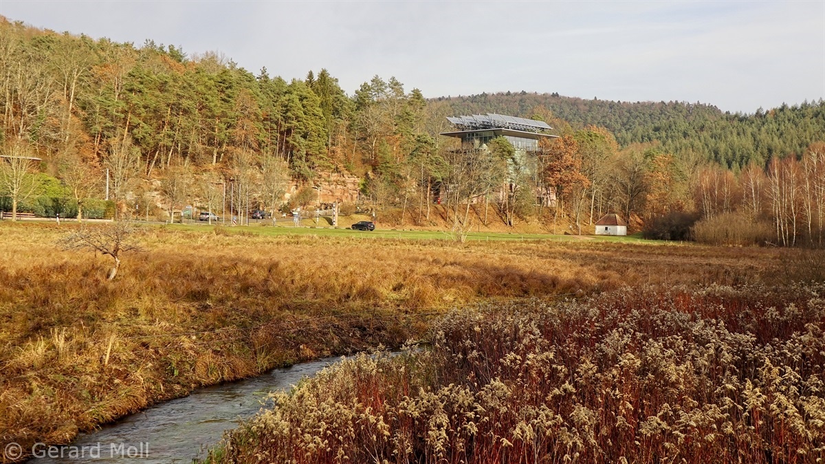 Vom Biosphärenhaus in Fischbach bei Dahn geht es zunächst in das Tal des Spiesswoogs, dann umrunden wir nördlich den Breiten Kippenberg und erreichen die Ausläufer von Fischbach. Das letzte Teilstück folgt dem Wassererlebnisweg zurück zum Biosphärenhaus.