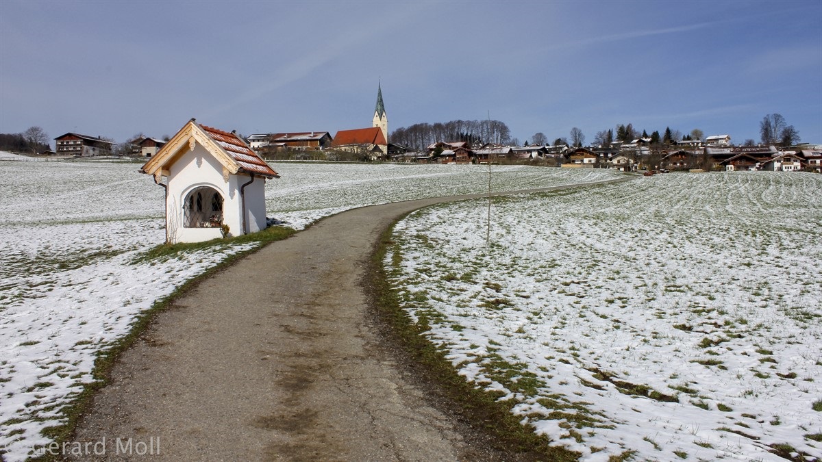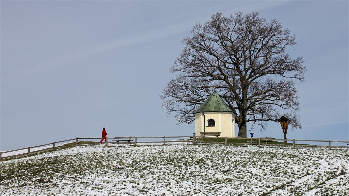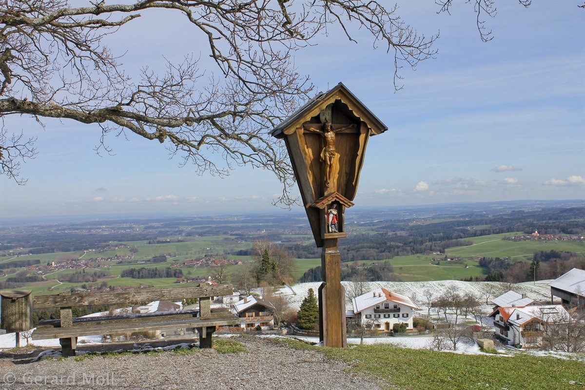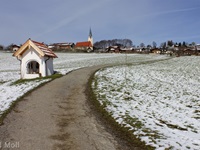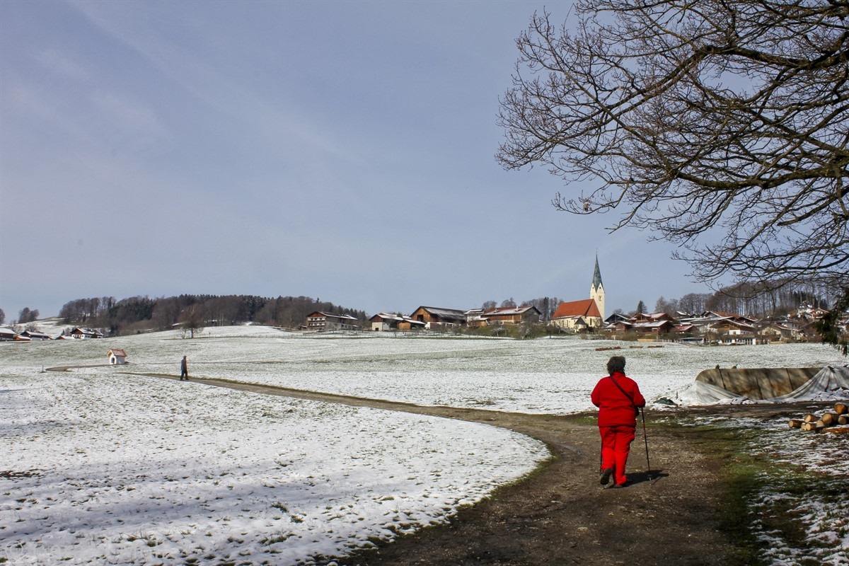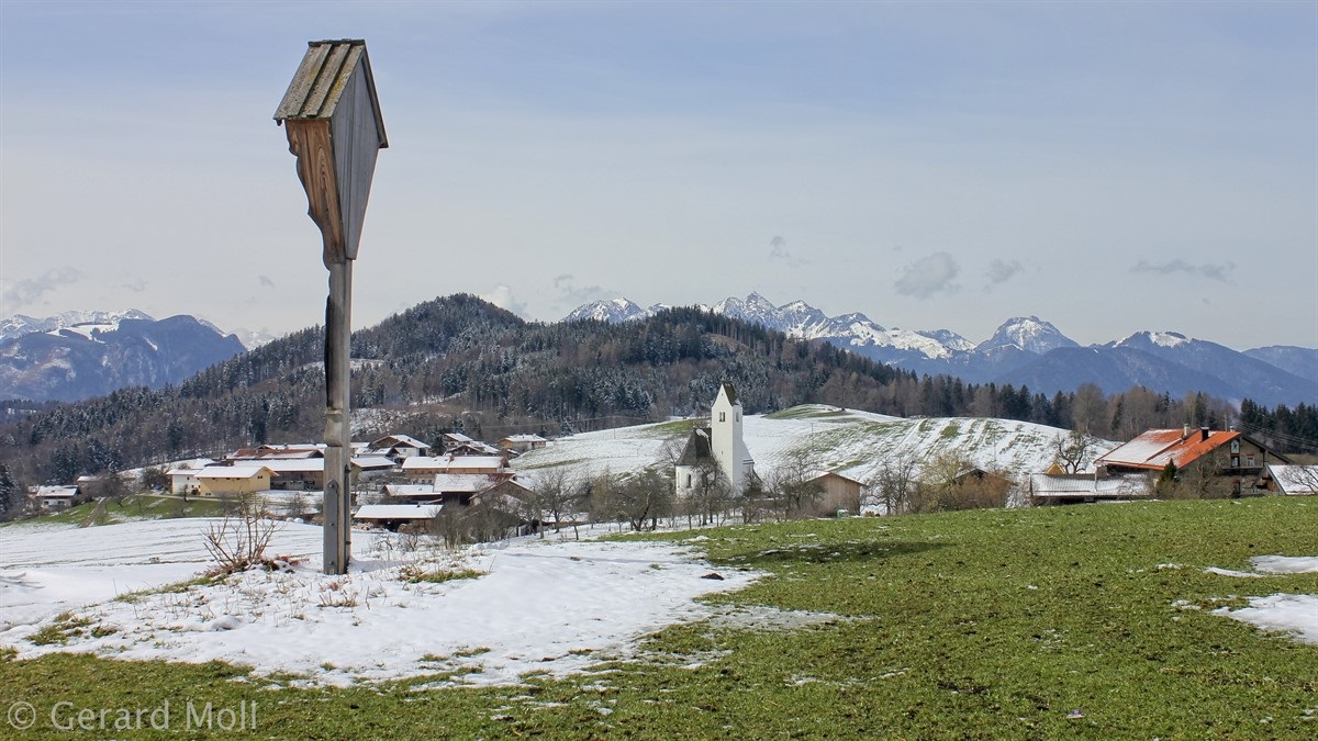 Wir parken nahe Törwang auf dem Samerberg. Durch den Ort gehen wir hinauf zu einer kleinen Kapelle mit herrlicher Aussicht. Über Steinkirchen erreichen wir die Dandlbergalm und wandern nach Roßholzen. Über Friesing gelangen wir nach Grainbach und zum Ausgangspunkt zurück.