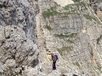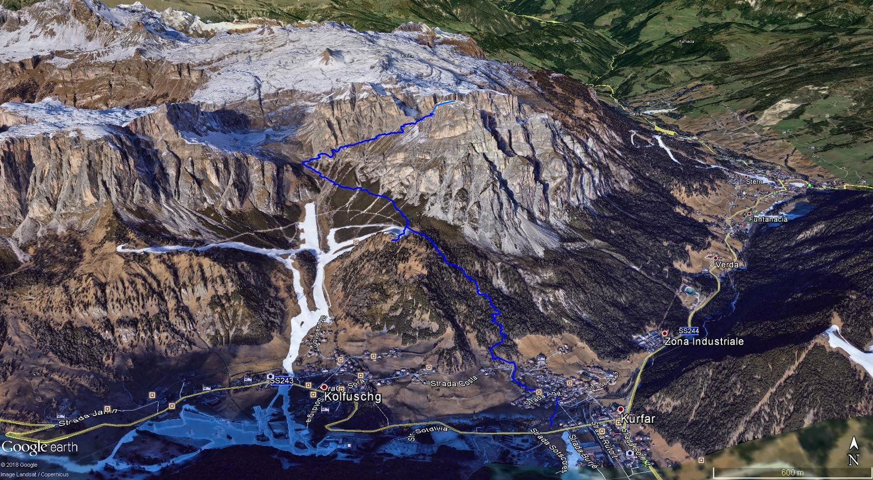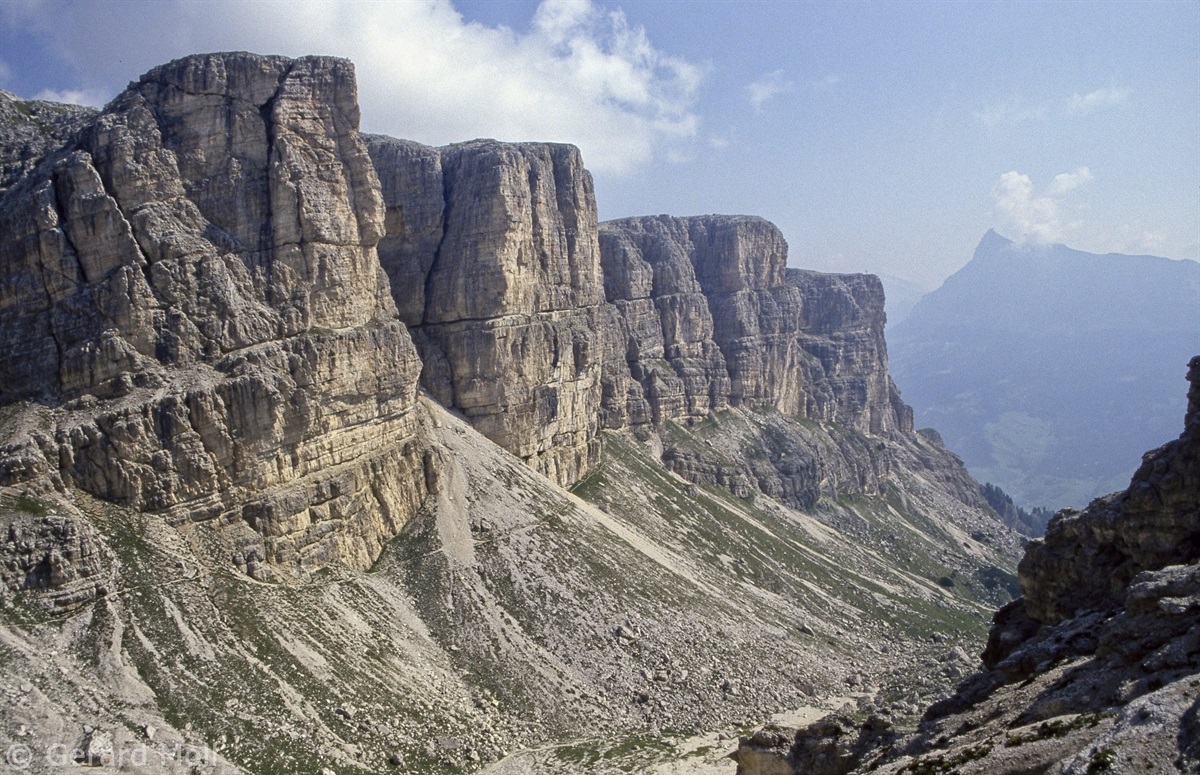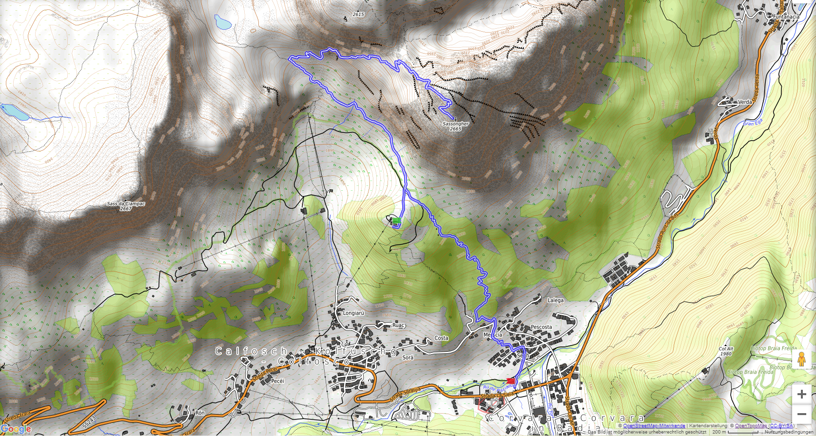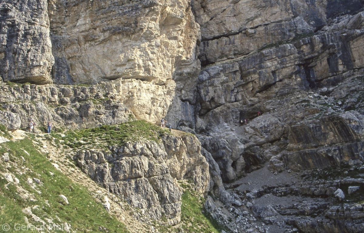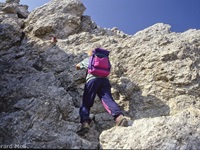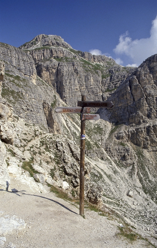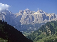 Der mächtige Felsklotz des Sass Songher überragt Corvara. Die Seilbahn zum Col Pradat (2038 m) bringt uns ihm näher. Der Weg zum Gipfel des Sass Songher (2665 m) über die Sass Songher-Scharte verlangt Trittsicherheit und Schwindelfreiheit.