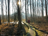 Dieser kurze, aber interessante Weg startet in Schifflange bei der Bestgen-Mühle. Bei unserem letzten Besuch im Jahr 2018 waren die Holzstege zum Teil schwer beschädigt und unbegehbar (siehe Bild).