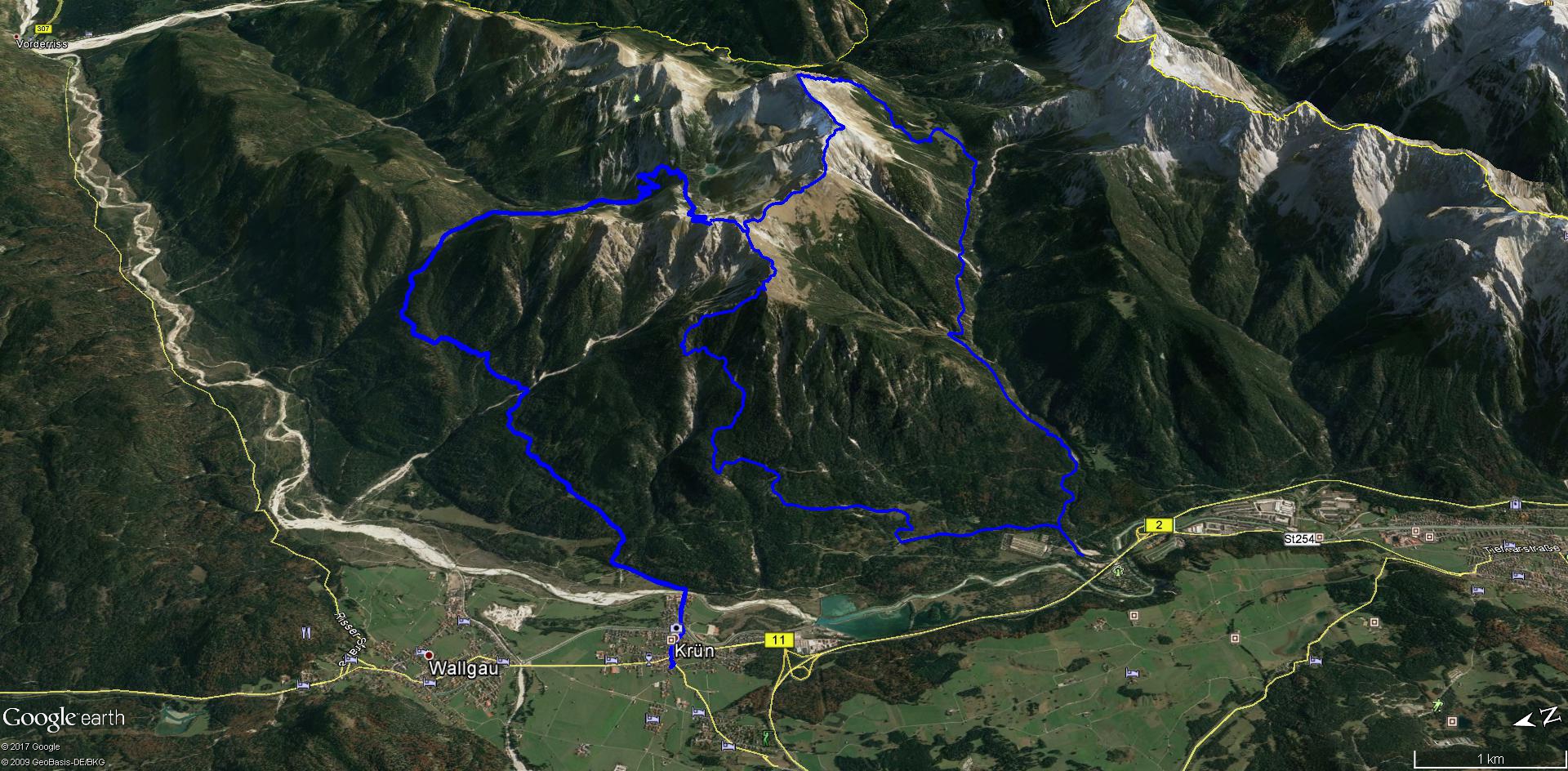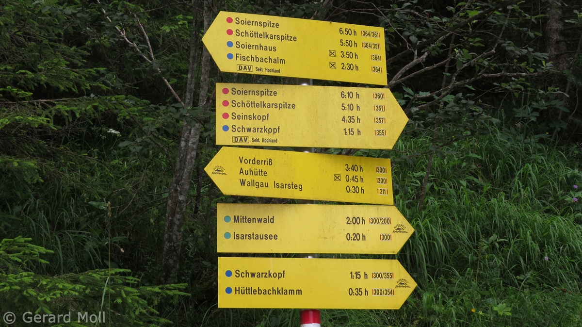 Viele weite Wege führen zur Schöttelkarspitze (2050 m). Der einfachste läuft von Krün über die Fischbachalm und das Soiernhaus zum Gipfel, verlangt aber hin und zurück wegen einem Zwischenabstieg an die 1500 Höhenmeter. Der Gipfel selbst wurde zu König Ludwigs Zeiten von seiner Jagdhütte (heutiges Soiernhaus) mit einem Reitweg und einem Pavillon erschlossen.