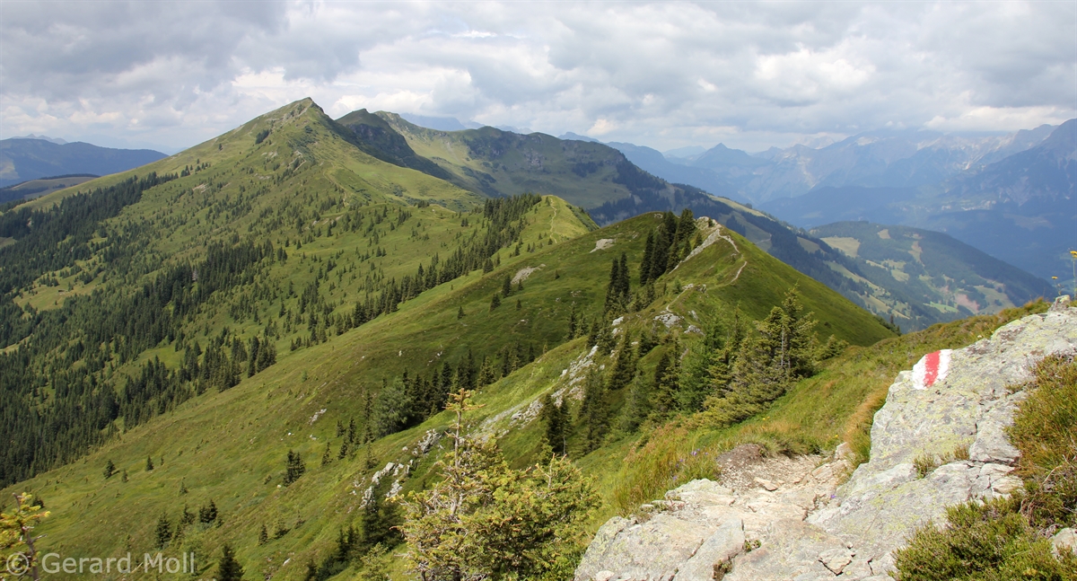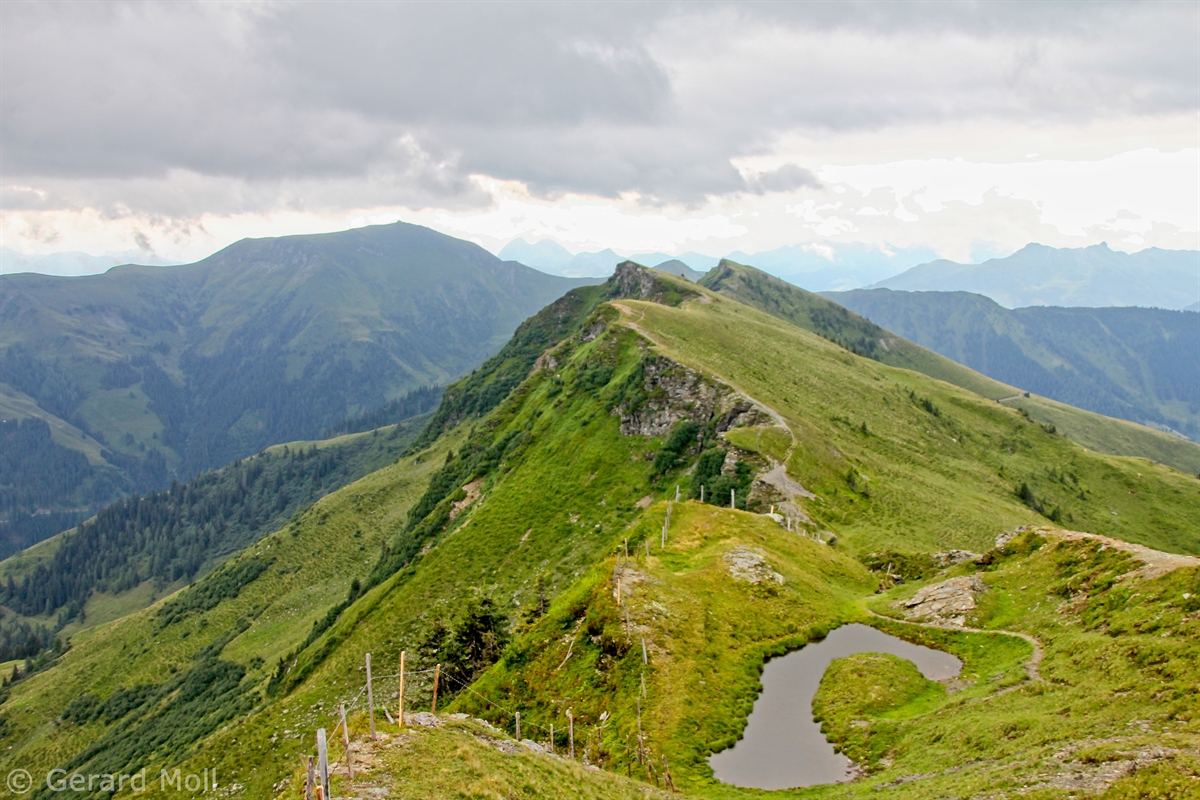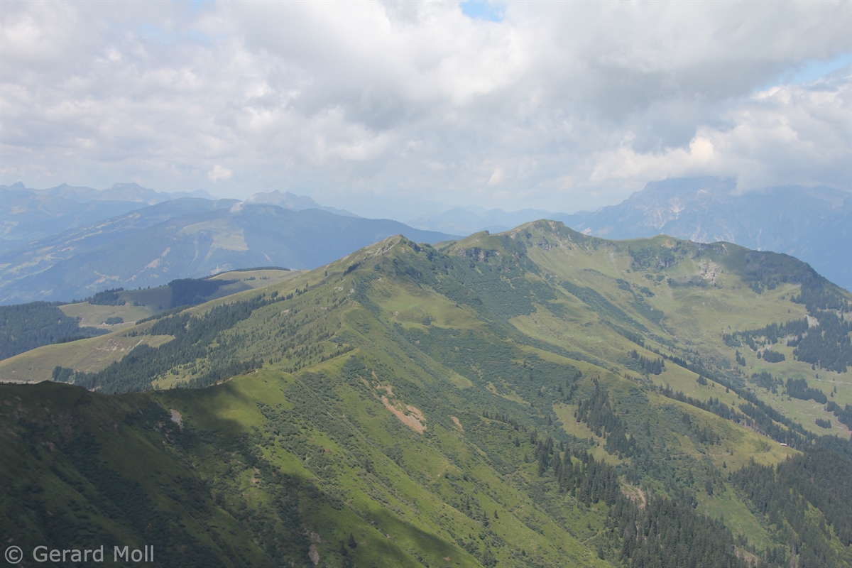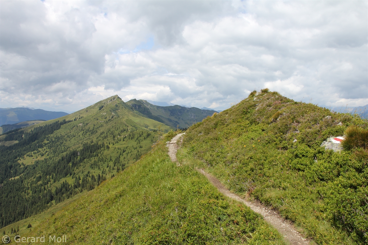 Ausgangspunkt für diese lange Tour ist der Mitterberghof (1200 m) oberhalb von Thumersbach. Unser erster Gipfel ist die Schwalbenwand (2011 m), über den langen Rücken geht es zum Schönwieskopf (1994 m). Noch ist es ein langer Weg, ehe das Statzer Haus auf dem Hundstein (2117 m) erreicht ist. Jedes Jahr treffen sich hier Ende Juli 2000 bis 3000 Besucher zum Hundstoa-Ranggeln. Der Rückweg führt uns über die Schützingalm.