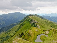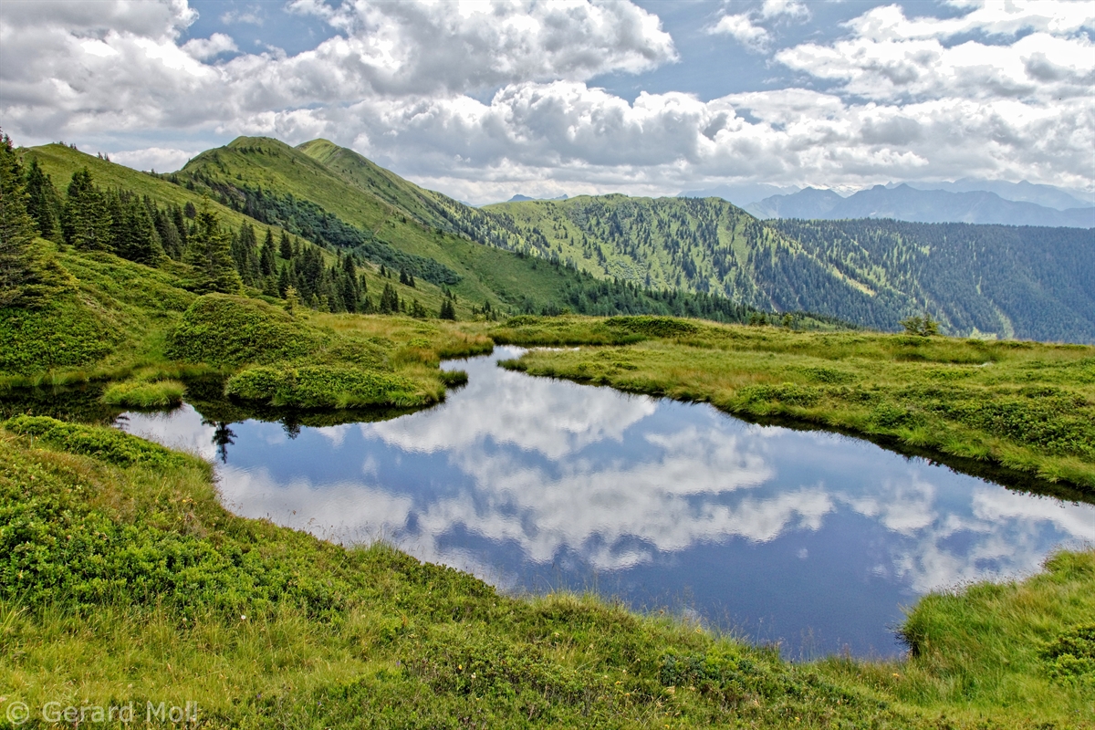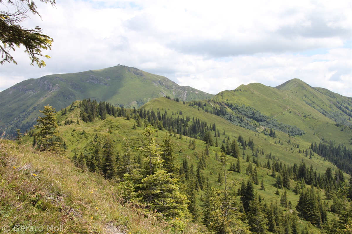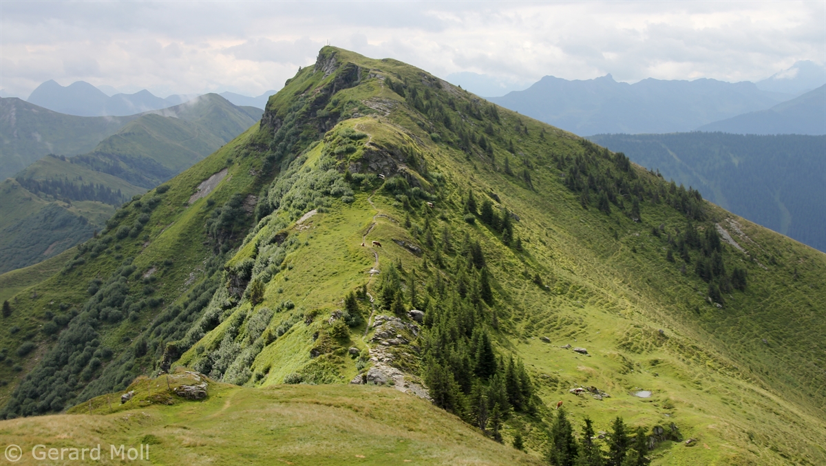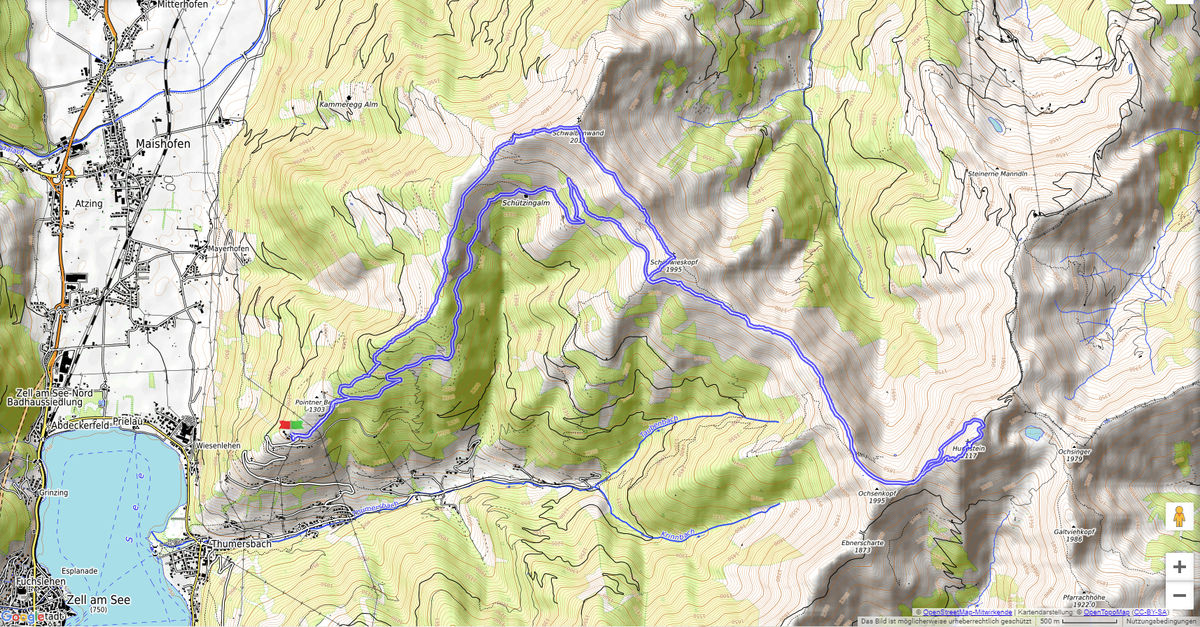 Ausgangspunkt für diese lange Tour ist der Mitterberghof (1200 m) oberhalb von Thumersbach. Unser erster Gipfel ist die Schwalbenwand (2011 m), über den langen Rücken geht es zum Schönwieskopf (1994 m). Noch ist es ein langer Weg, ehe das Statzer Haus auf dem Hundstein (2117 m) erreicht ist. Jedes Jahr treffen sich hier Ende Juli 2000 bis 3000 Besucher zum Hundstoa-Ranggeln. Der Rückweg führt uns über die Schützingalm.
