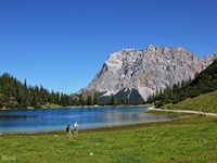Der Aufstieg von der Ehrwalder Alm (mit Seilbahn oder Taxi erreichbar) über den Seebensee zur Coburger Hütte am Drachensee bietet einmalige Ausblicke zur Zugspitze. Der Weiterweg zur Ehrwalder Sonnenspitze (2417 m) erfordert ausgesetzte Kletterei im II. - III. Schwierigkeitsgrad.