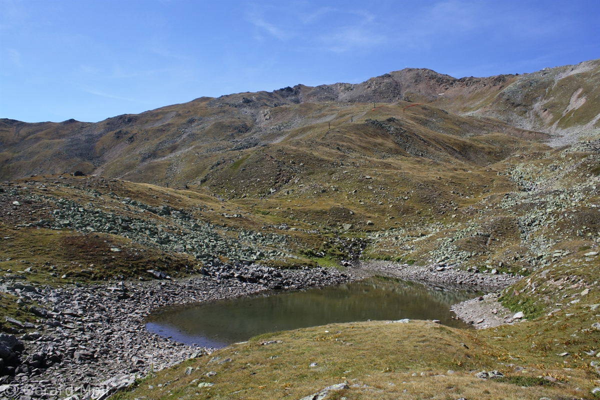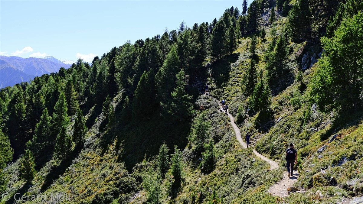 Wir erreichen die Haideralm (2120 m) entweder mit der Seilbahn von St. Valentin auf der Haide oder, ungleich schöner, auf dem Höhenweg von Schöneben (2087 m). Von hier aus müssen über 700 Höhenmeter zum schönen Gipfelkreuz auf der Seebödenspitze (2859 m) überwunden werden. Der Abstieg kann auch über das Seeköpfl und den Grünen See zur Haideralm erfolgen.