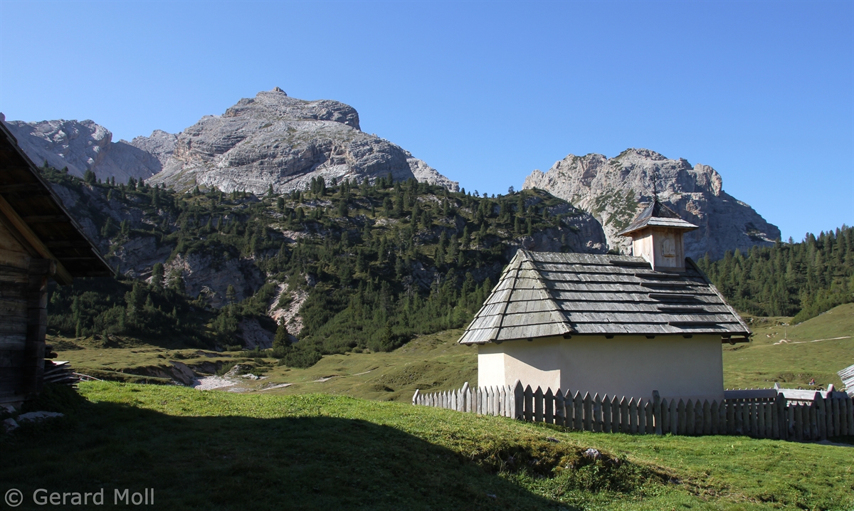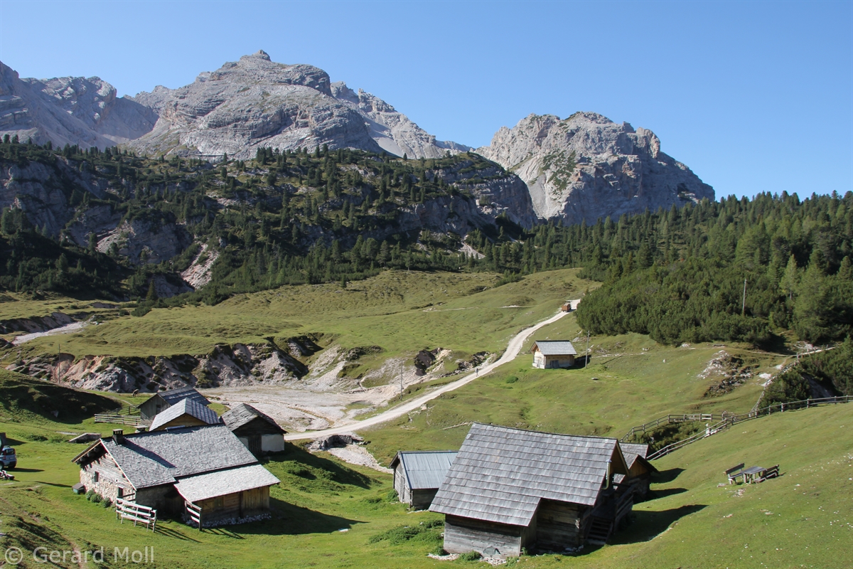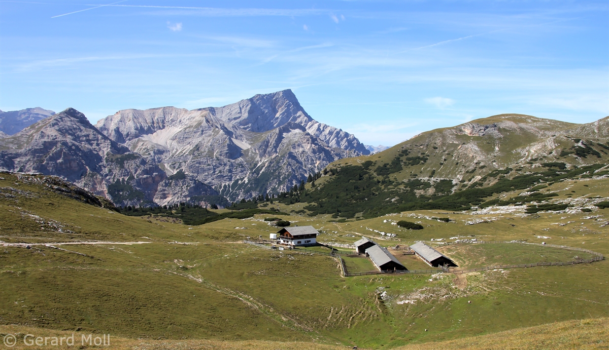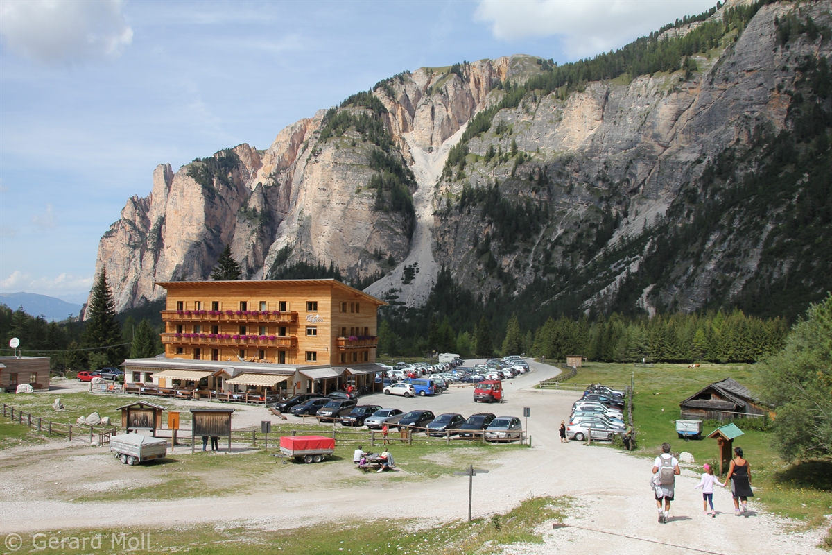 Wir fahren von Enneberg nach Pederu (1548 m). Auf einer extrem steilen Kriegsstrasse erreichen wir das Rifugio Fodara Vedla (1980 m) und wandern weiter zur Senneshütte (2126 m).