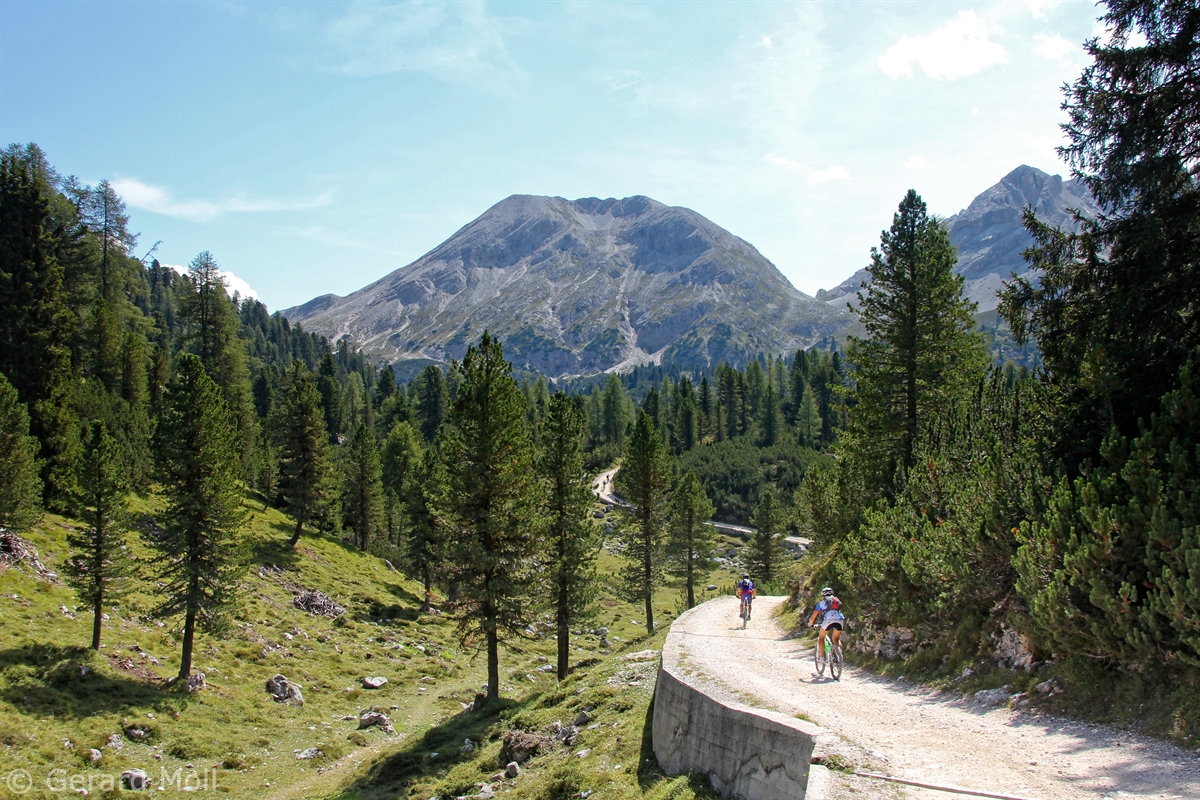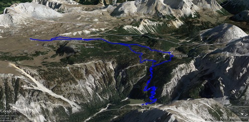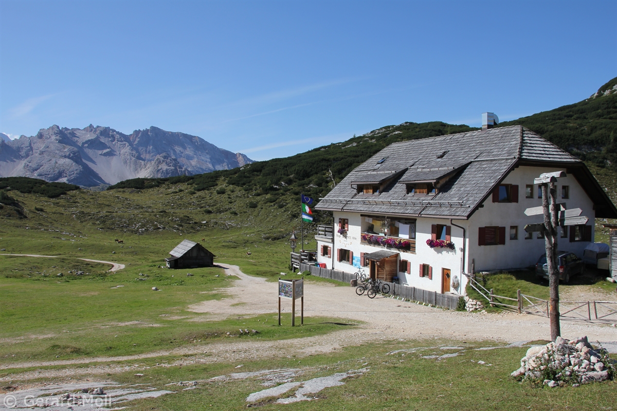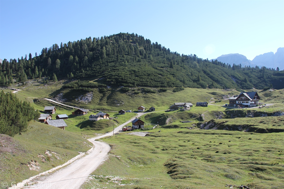 Wir fahren von Enneberg nach Pederu (1548 m). Auf einer extrem steilen Kriegsstrasse erreichen wir das Rifugio Fodara Vedla (1980 m) und wandern weiter zur Senneshütte (2126 m).