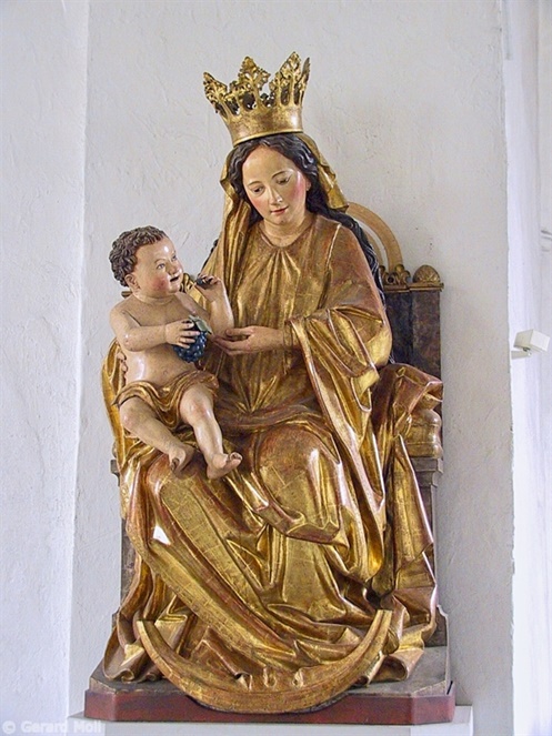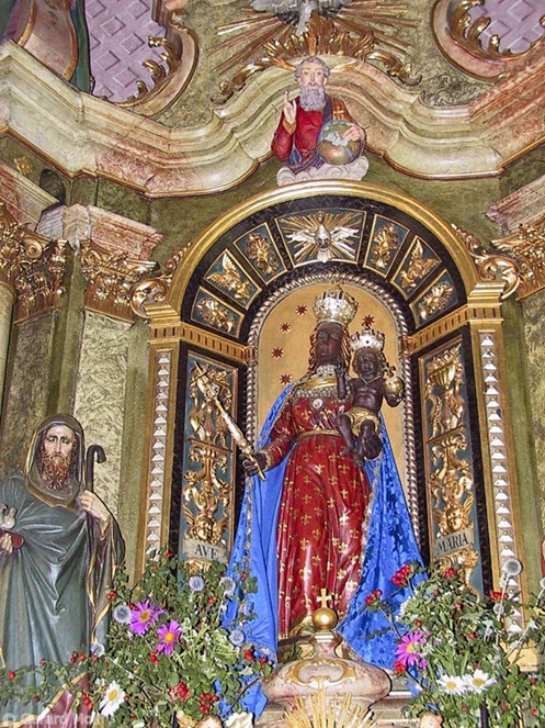 Bild in Lightbox öffnen (open image in lightbox). Die schwarze Madonna in der Kirche Unsere Liebe Frau in Maria Saalen.