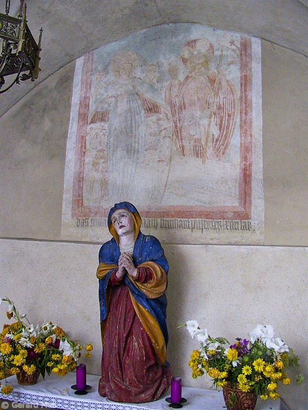 Bild in Lightbox öffnen (open image in lightbox). Die Friedhofskapelle in St. Peter in Ahrn enthält Reste von Fresken aus dem 16. Jahrhundert.
