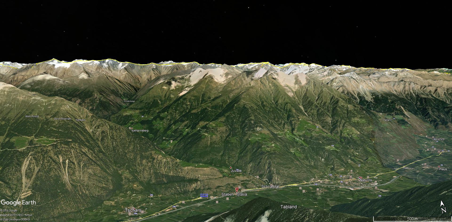 Staben liegt an der Etsch nahe der Einmündung des Schnalstales am Fuss von Schloss Juval.