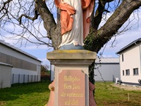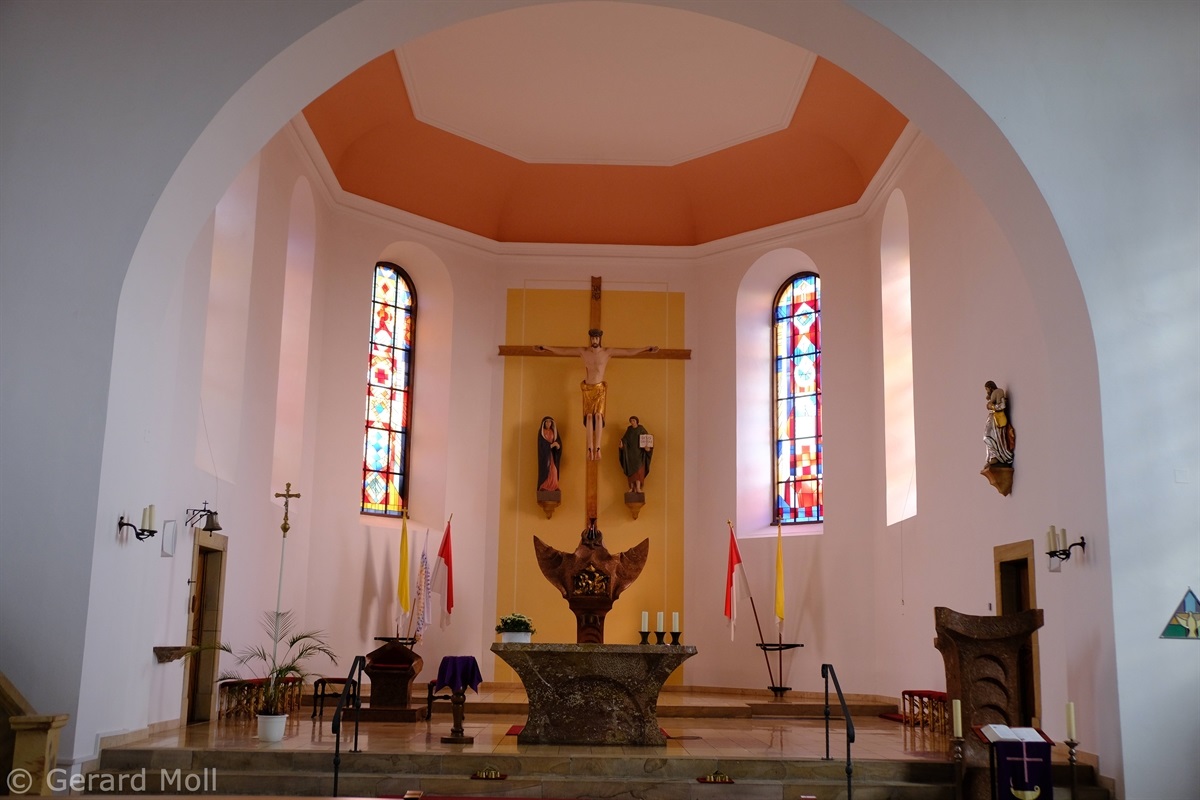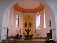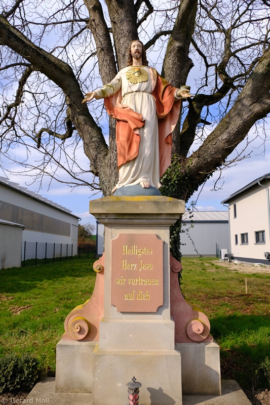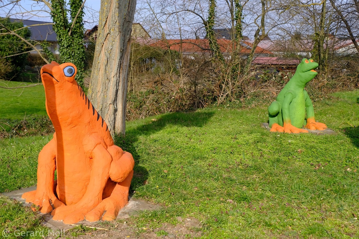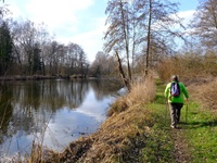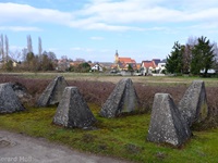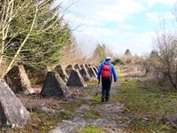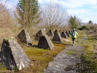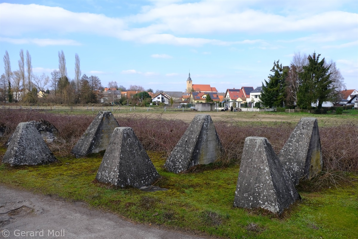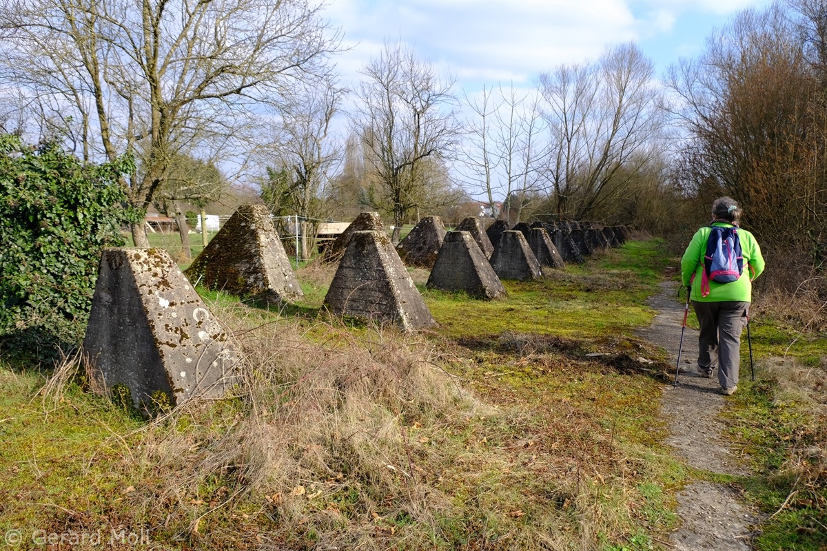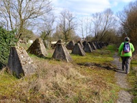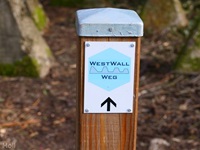 Von der Kirche in Steinfeld folgen wir der Beschilderung des Westwallweges und erreichen bald die "Drachenzähne" der ehemaligen Panzersperren. Dann umrunden wir den mit Wasser gefüllten Panzergraben, der heute ein Naturidyll ist. Am Bahnhof vorbei kehren wir zur Kirche zurück.