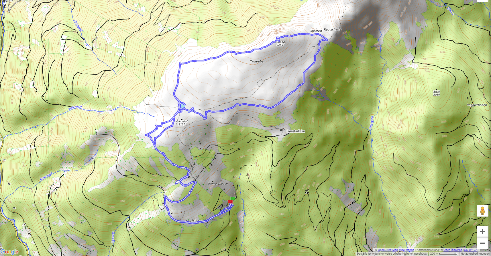 Da der Fahrweg von Heinfels zur Tessenberger Alm in sehr schlechtem Zustand war, haben wir schon unterhalb der Tessenberger Alm (1950 m) geparkt und sind zu Fuss weiter gegangen. Vom Tessenberger See haben wir das Plateau mit dem Gipfel der Steinrast (2253 m) umrundet.