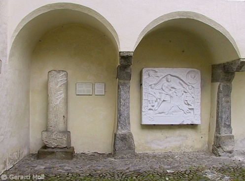 Bild in Lightbox öffnen (open image in lightbox). Mithrasstein und römischer Meilenstein am Rathaus.