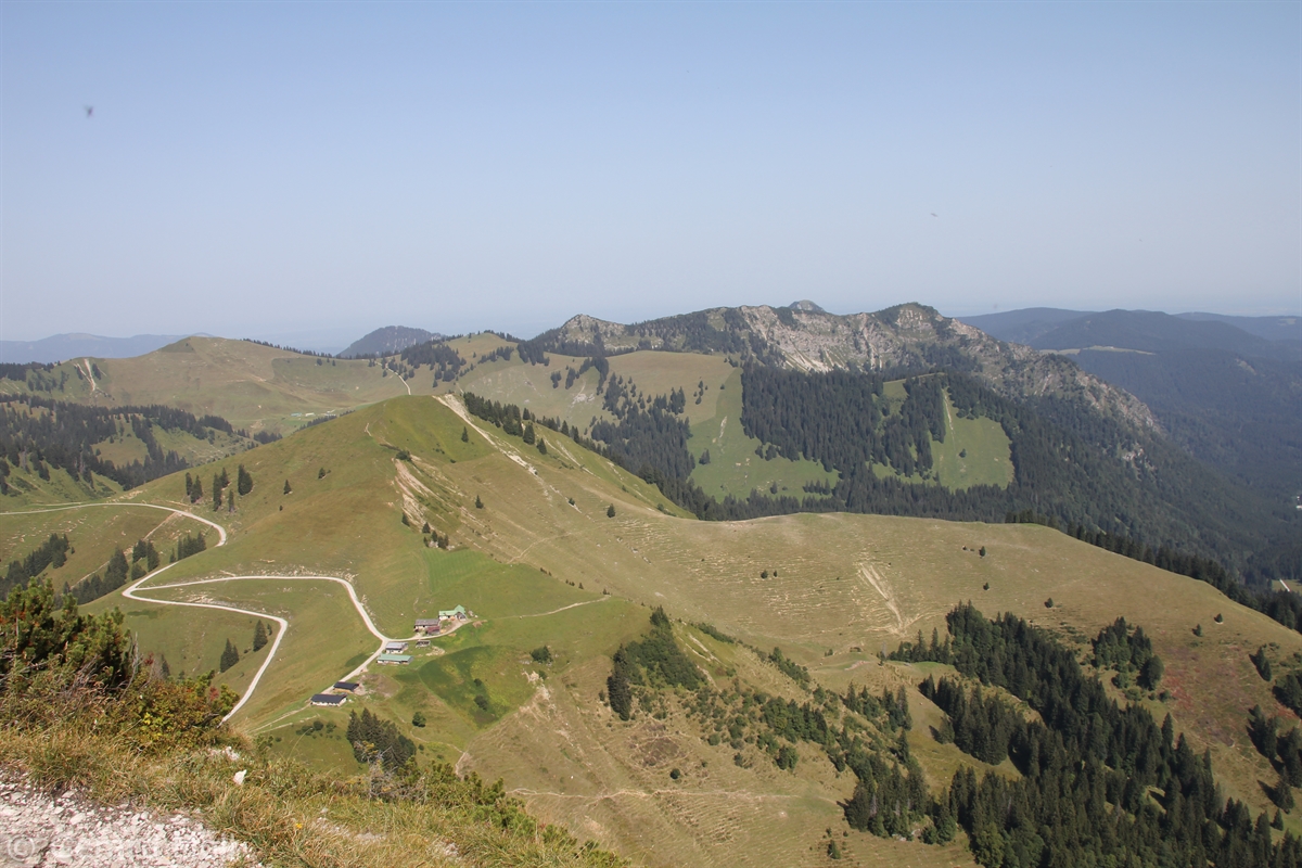 Von Bayerwald (861 m) nahe dem Achenpass führt ein steiler Anstieg zur Tegernseer Hütte (1638 m), die auf dem Felsgrat zwischen Rossstein und Buchstein thront. Der Rossstein (1698 m) ist in wenigen Minuten erreicht, der Buchstein verlangt Kletterfertigkeiten.