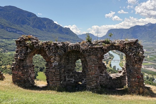 Südlich von Bozen trennt das fruchtbare Etschtal die Fleimstaler Alpen im Osten von der Nonsbergruppe im Westen.