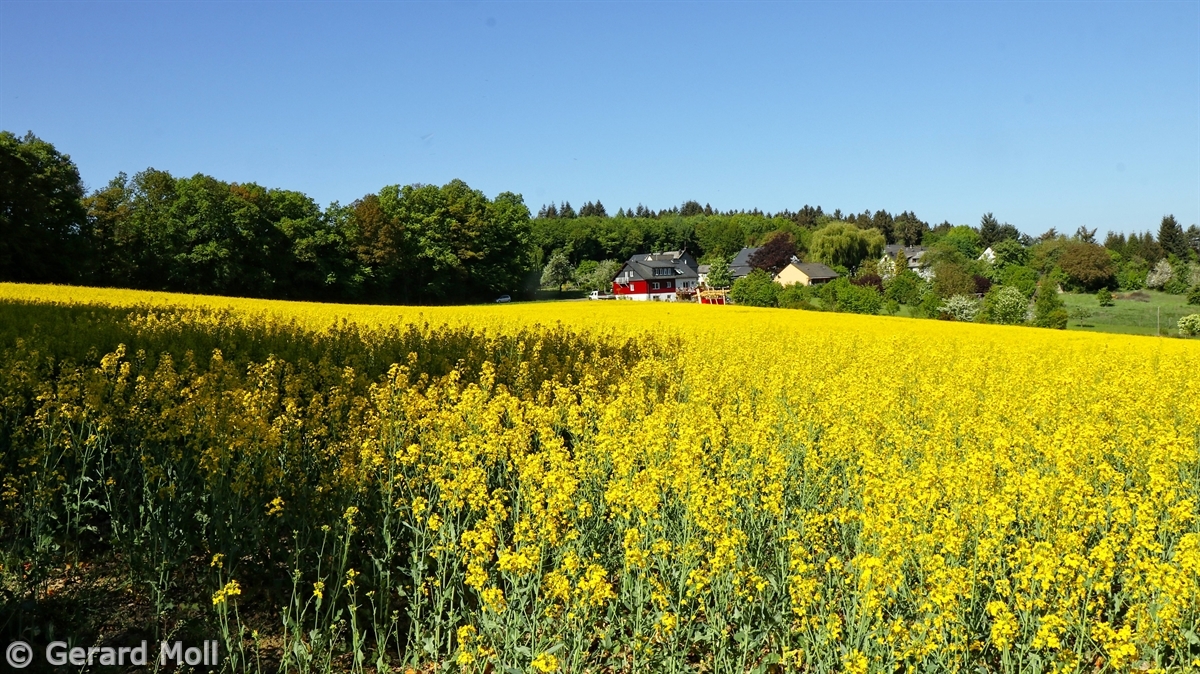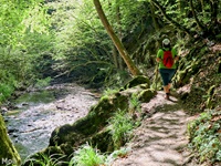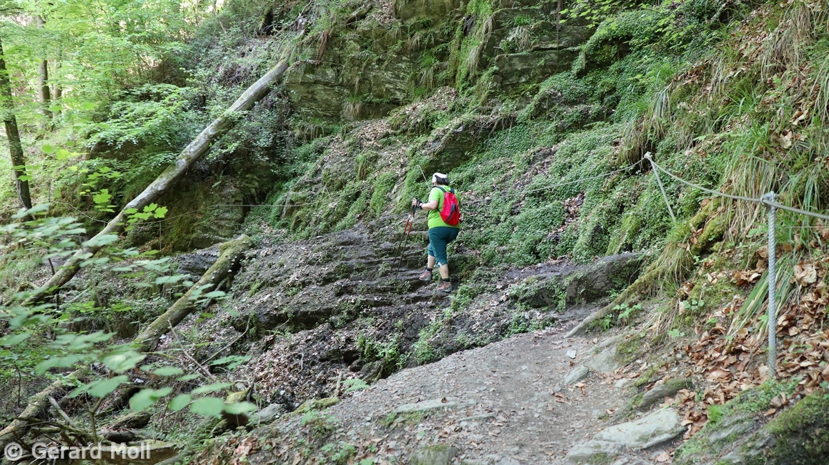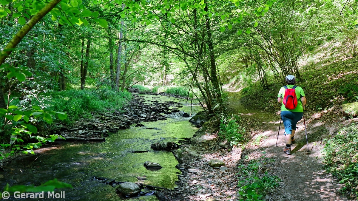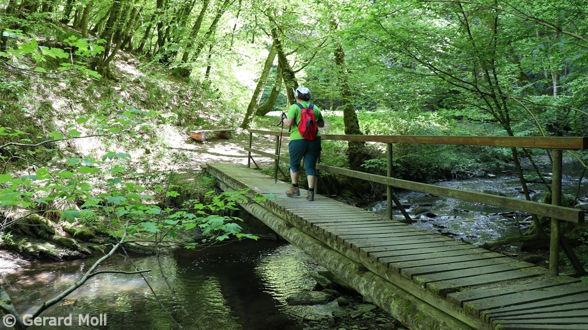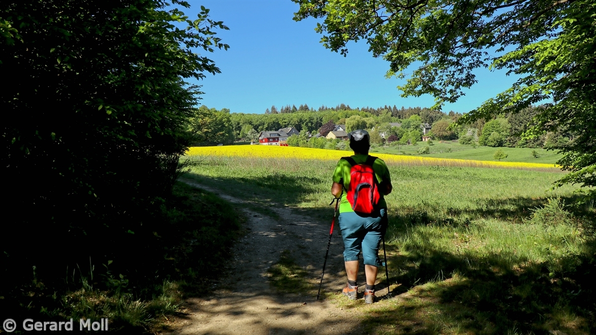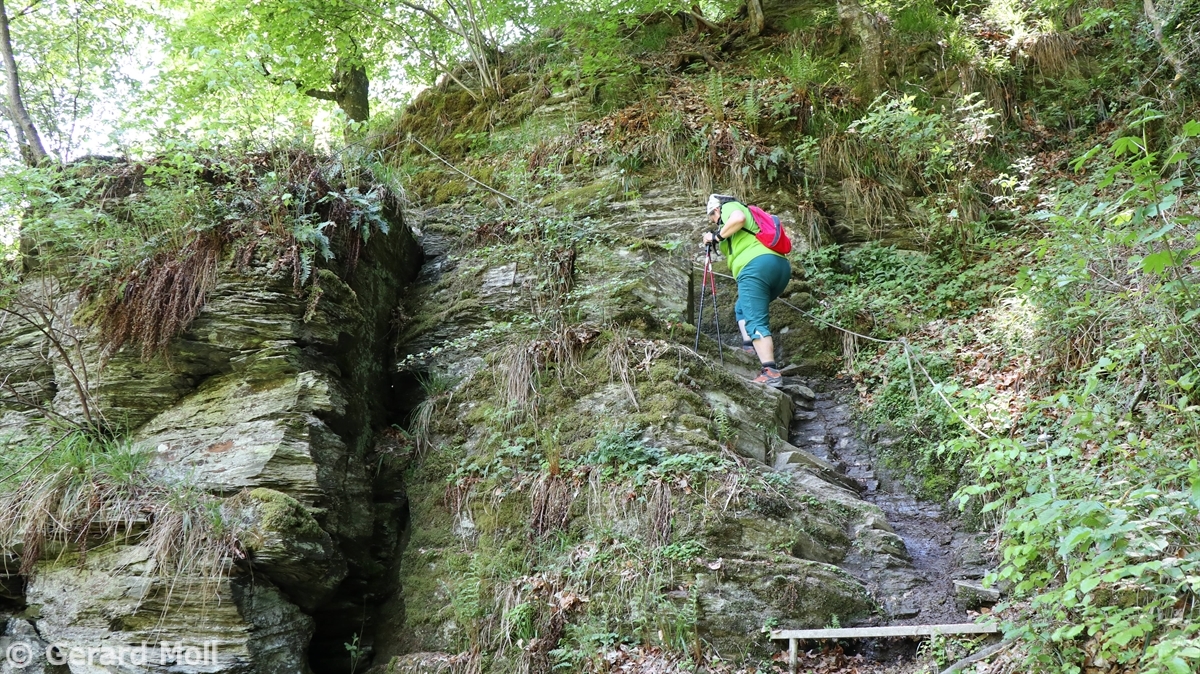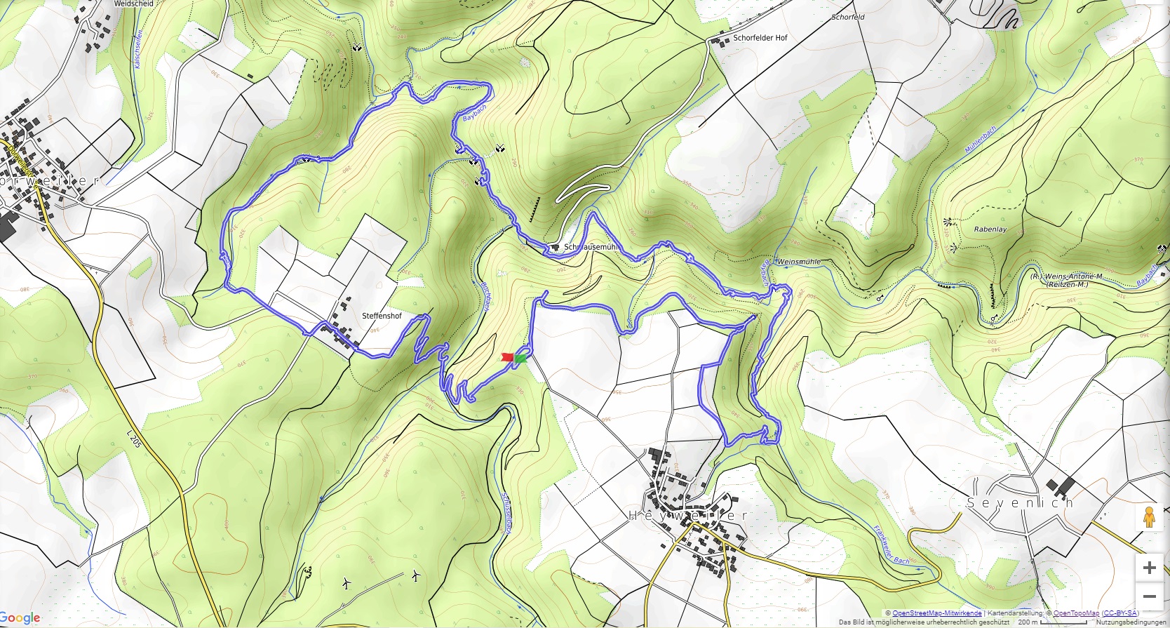 Vom Parkplatz bei Heyweiler führt der Weg zuerst steil hinunter zum Buchbach, um dann wieder hinauf nach Steffenshof anzusteigen. Es geht wieder hinunter in Baybachtal und durch die abenteuerliche Klamm an der Schmausemühle vorbei. Zum Abschluss steigen wir hinauf zu den Feldern nahe Heyweiler und nach dem Aussichtspunkt Barreterley kehren wir zum Parkplatz zurück.
