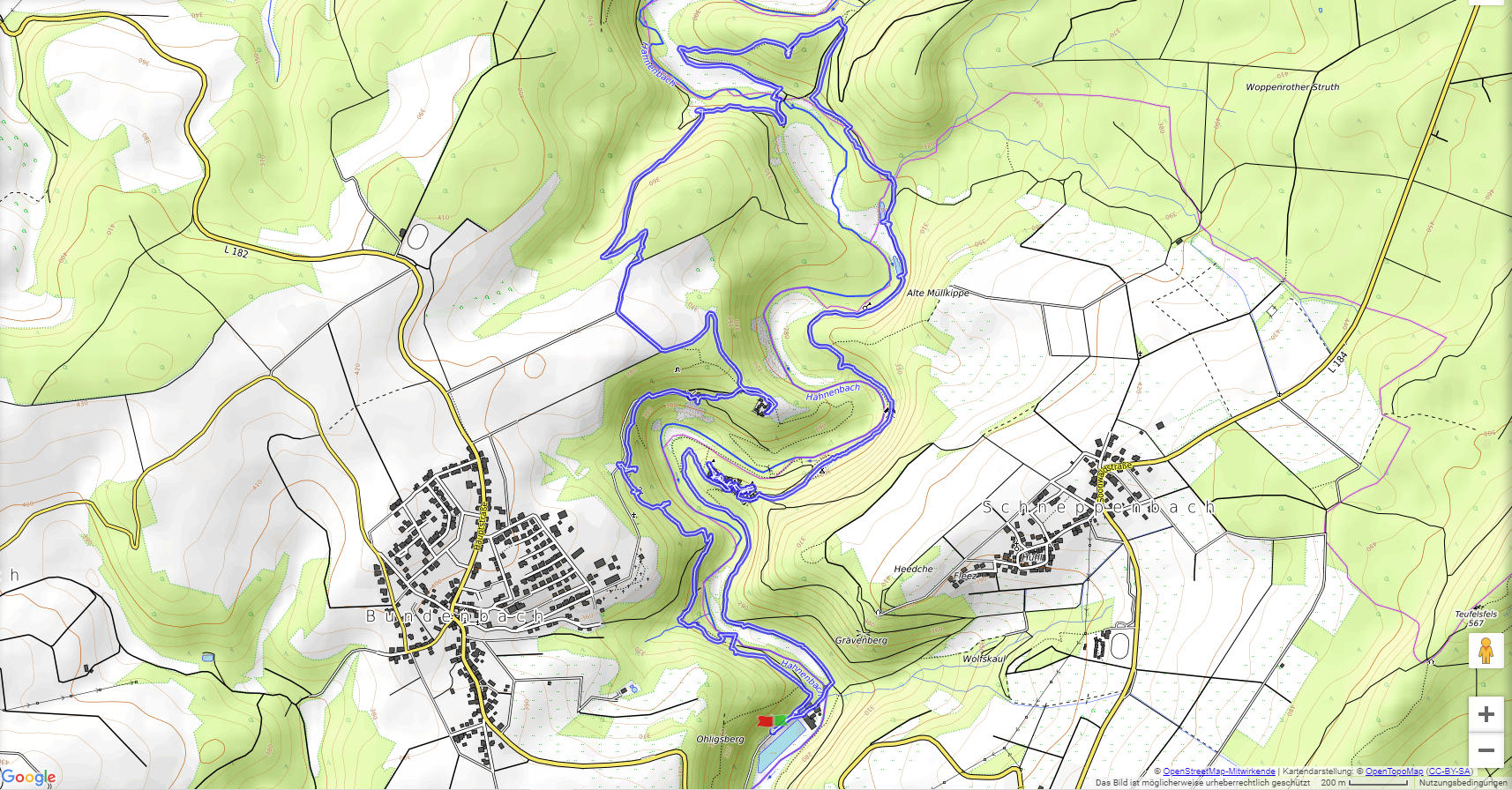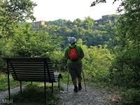 Deutschlands schönster Wanderweg des Jahres 2012 startet am Parkplatz des Besucherbergwerks Herrenberg. Bei dem Besucherbergwerk befindet sich auch ein Mineralienmuseum, nicht weit entfernt davon kann man die Keltensiedlung Altburg besichtigen. Nach einer Schieferhalde überquert man auf einer Fußgängerbrücke den Hahnenbach und kommt zu der Ruine Hellkirch. Zum Schluss erwartet uns noch die gewaltige Schmidtburg, ehe wir durch das Hahnenbachtal zum Ausgangspunkt zurückkehren.