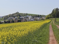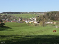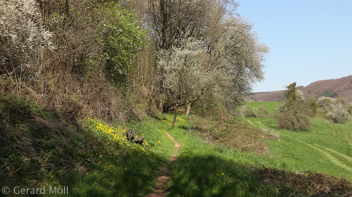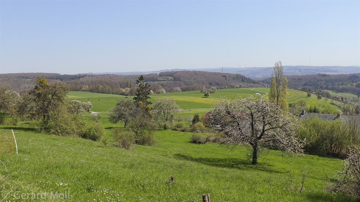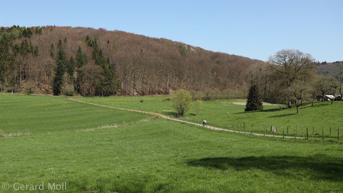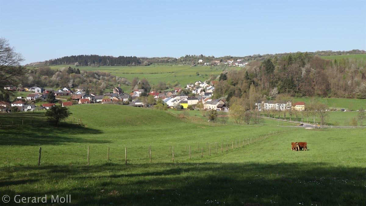 Vom Dorfplatz in Mannebach wandern wir durch Wälder bis zu den Höhlen der Hinkelsgret. Wie bei der vorherigen Tour gelangen wir über Kümmern nach Fisch und zurück nach Mannebach.