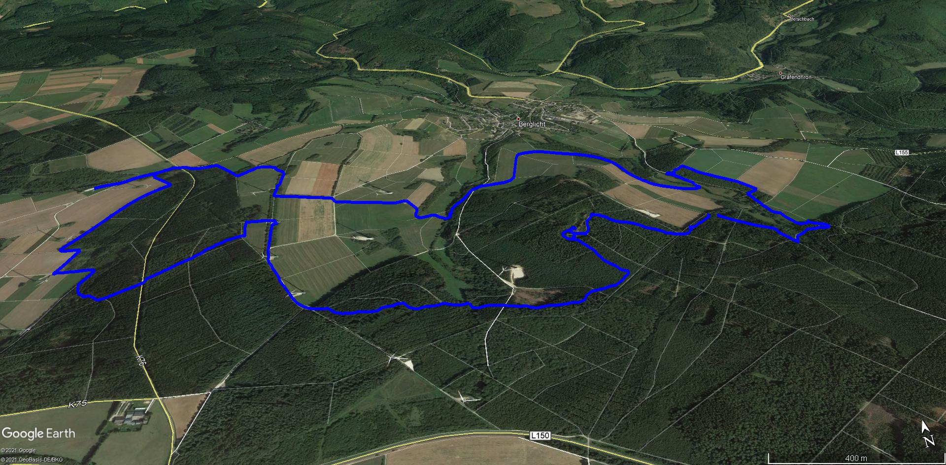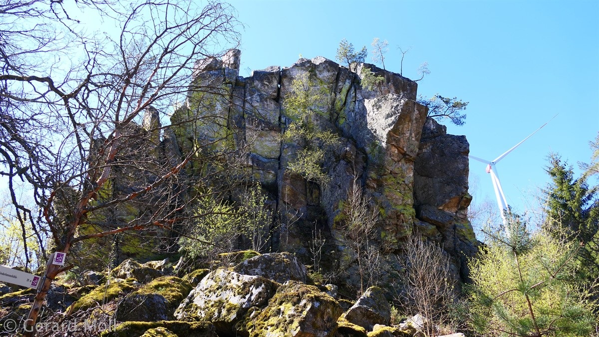 Der Wanderparkplatz Hunsrücker Windweg wird von gewaltigen Windrädern überragt. Von hier folgen wir der Markierung unserer Traumschleife, die uns an den Stationen des Themenweges "Hunsrücker Windweg" vorbeiführt. Danach erreichen wir durch dichten Wald die beeindruckenden Quarzitfelsen der Berger Wacken mit der Schinderhannes-Höhle. Nach der Haardtwaldquelle wandern wir durch offenes Gelände mit schöner Fernsicht zurück zum Ausgangspunkt.