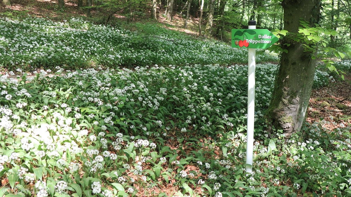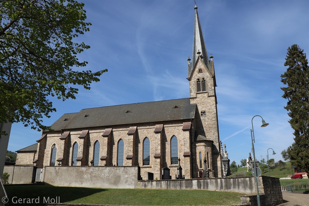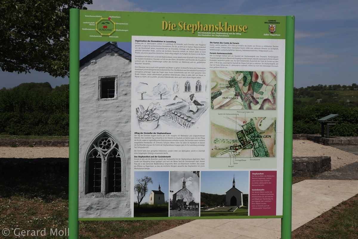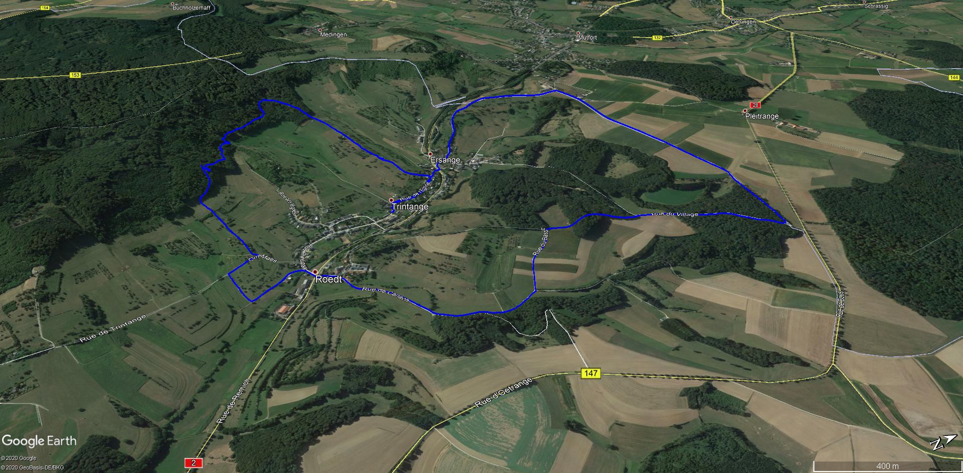 Bei unserer Tour folgen wir einer IVV-Wanderung. Wir starten in Trintange bei der Kirche und wandern hinauf bis zum Mutferter Haff. Über Felder erreichen wir ein Waldstück und an Obstwiesen vorbei steigen wir nach Roedt ab. Auf der anderen Strassenseite geht es noch einmal hoch zum Waldrand. An der herrlich gelegenen Stephanusklause, einer früheren Einsiedelei, vorbei kehren wir nach Trintange zurück.
