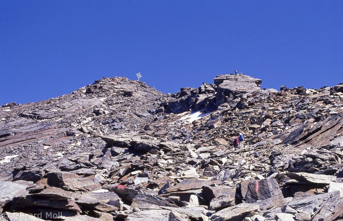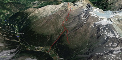 Von Sulden (1861 m) nutzen wir den Kanzellift, um etwas Höhe zu gewinnen und starten die Tour an der Bergstation in 2348 m. Bis zur Düsseldorfer Hütte (2721 m) sind nur noch knappe 400 Höhenmeter zu bewältigen. Von der Hütte folgen wir Weg Nr. 5 in das Zaytal hinein bis an den Fuß der Tschengelser Hochwand. Der Weiterweg erfordert Trittsicherheit und Schwindelfreiheit, Sicherungen helfen hinauf zum aussichtsreichen Gipfel der Tschengelser Hochwand (3375 m). Der Abstieg führt über die Düsseldorfer Hütte hinunter nach Sulden.