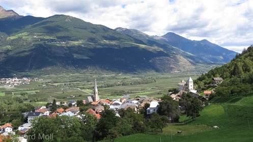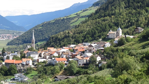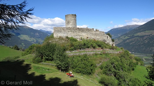 Bild in Lightbox öffnen (open image in lightbox). Die Burg Tschenglsberg aus dem 12. Jahrhundert westlich über Tschengls.