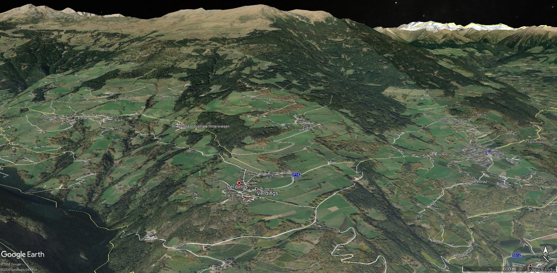 Der Ort Verdings liegt über dem Eisacktal nordwestlich von Klausen.