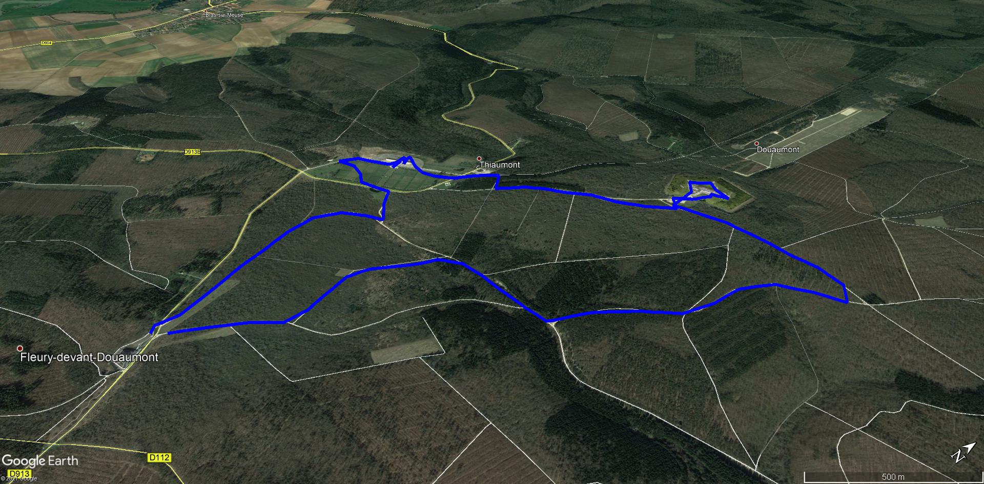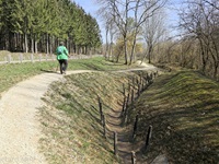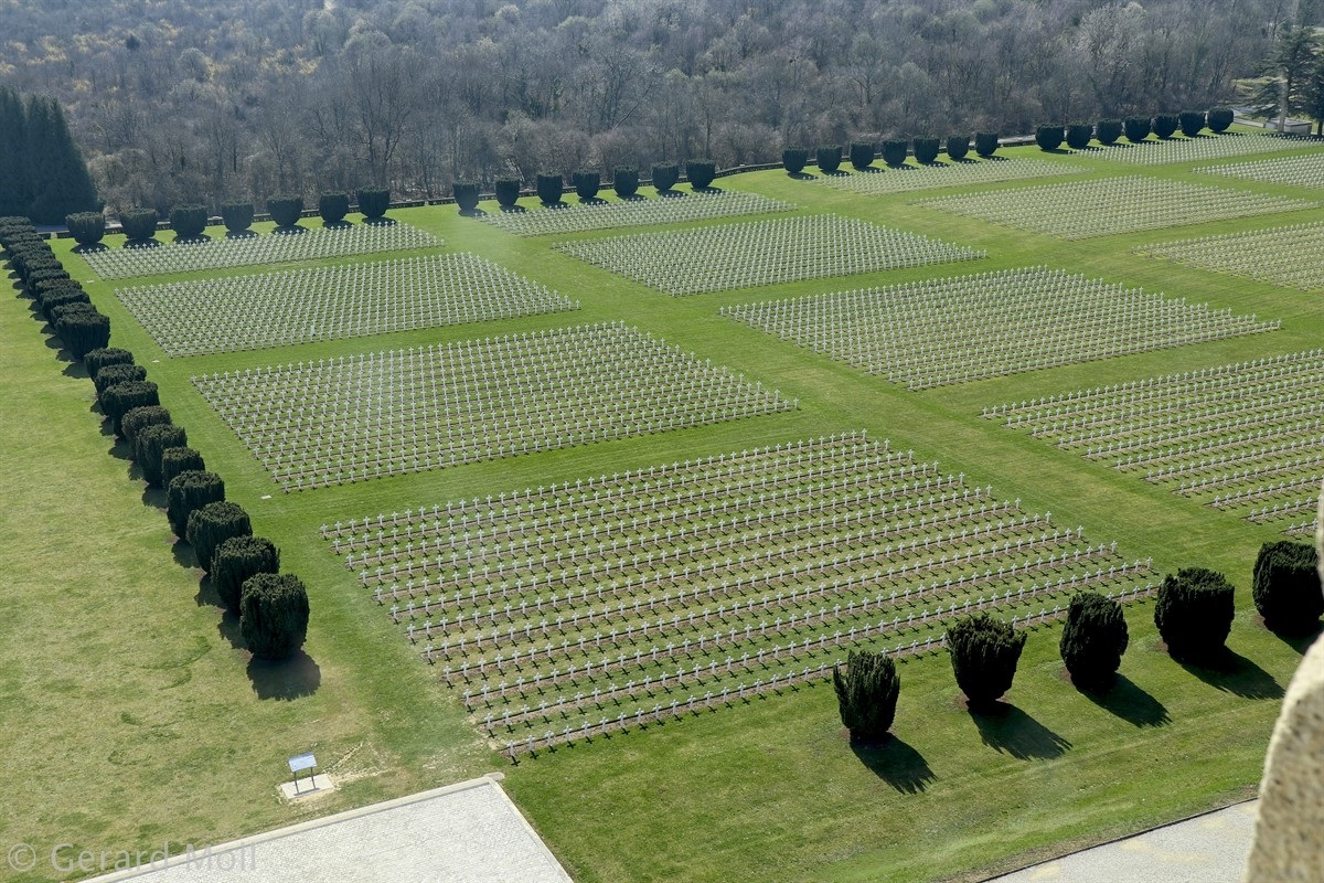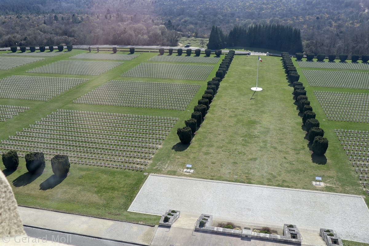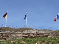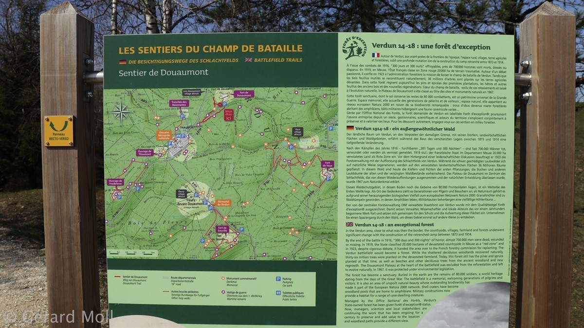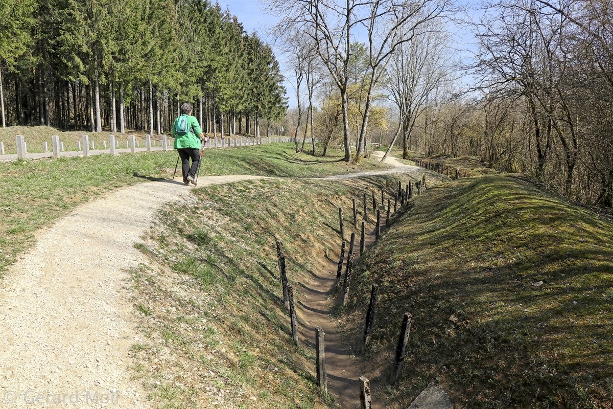 Vom Parkplatz bei dem Mémorial de Verdun gehen wir hinauf zum Friedhof und dem Ossuaire von Douaumont. In dem Ossuaire (Beinhaus) sind die Gebeine von 130.000 unbekannten Soldaten aus der Schlacht um das Fort Douaumont beigesetzt. An Schützengräben vorbei gehen wir weiter zum Fort Douaumont. Nach einer Besichtigung des Forts kehren wir durch Wald zurück zum Mémorial de Verdun.