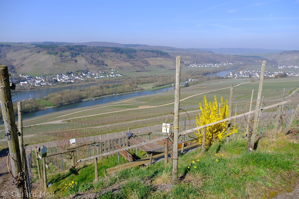 Von Detzem wandern wir, mit Blick auf die höchste Staustufe der Mosel, hinauf in die Weinberge, Durch Wald erreichen wir den 2023 sanierten Aussichtsturm, nach 105 Stufen haben wir oben einen herrlichen Blick auf die Mosel. Der Abstieg folgt eine ganze Weile dem Moselsteigseitensprung Mehringer Schweiz. Zum Schluss bringt uns der Wilhelm-Risse-Weg durch die Weinberge zurück nach Detzem.