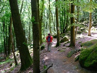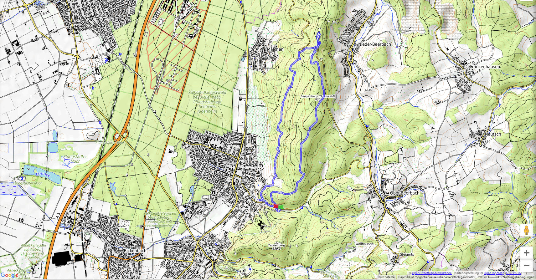 Wir folgen in Seeheim der Strasse nach Ober-Beerbach und parken an der Abzweigung zum Lufthansa-Ring. Durch den ehemaligen Schlosspark und weiter auf Waldwegen erreichen wir die Ruine der Burg Frankenstein. Von hier reicht bei klarem Wetter die Sicht über Darmstadt bis zur Skyline von Frankfurt. Der Alemannenweg bringt uns zurück zum Ausgangspunkt.