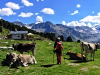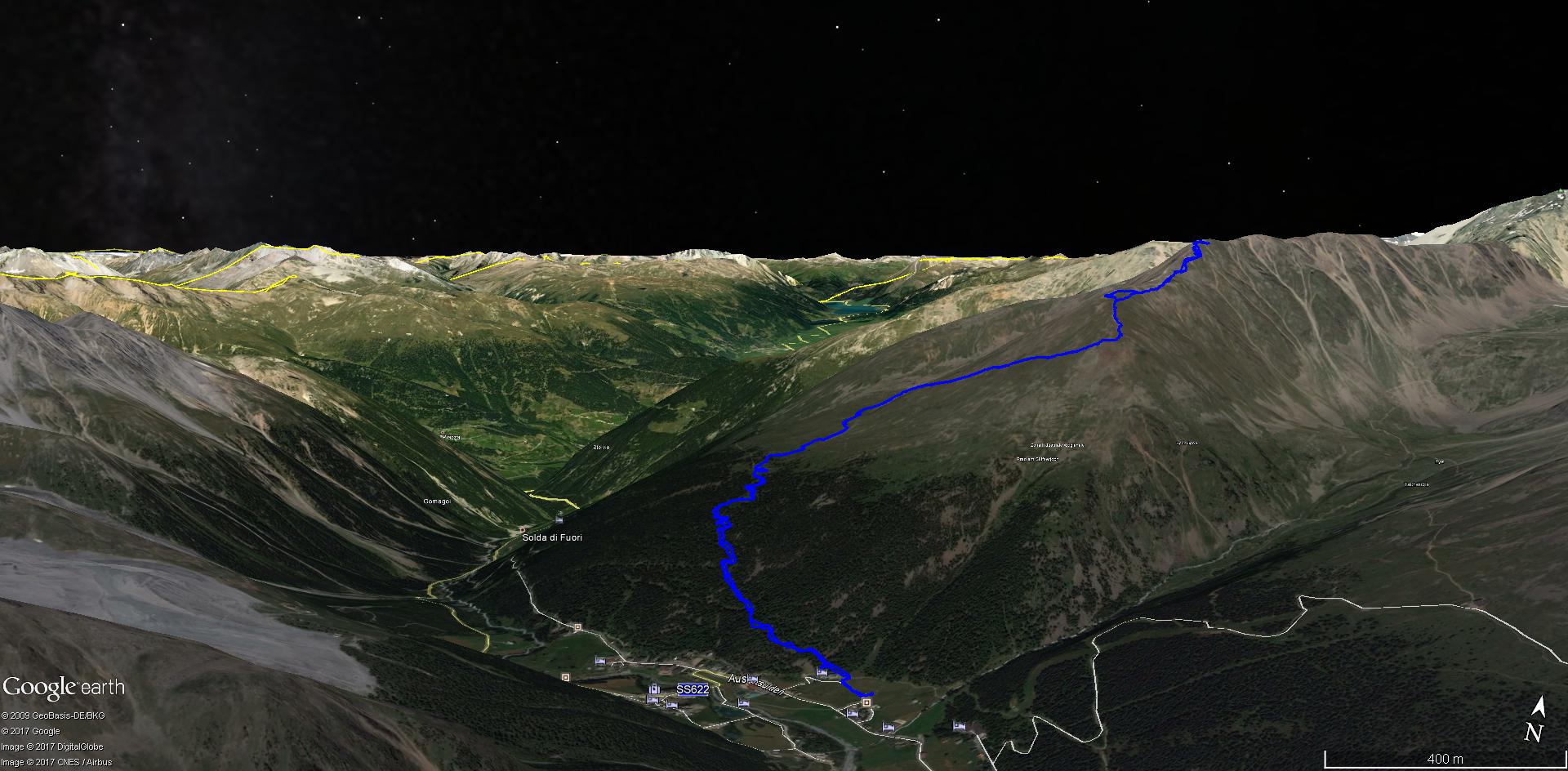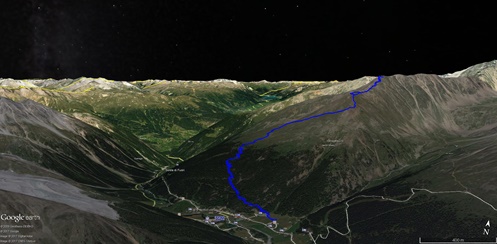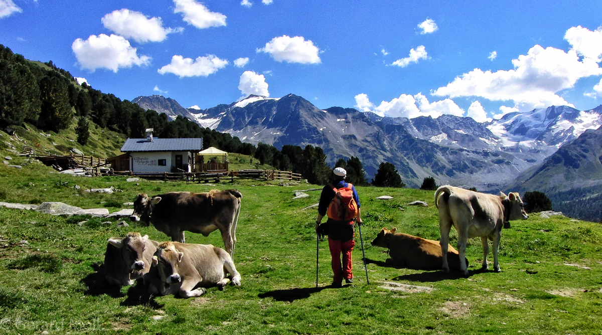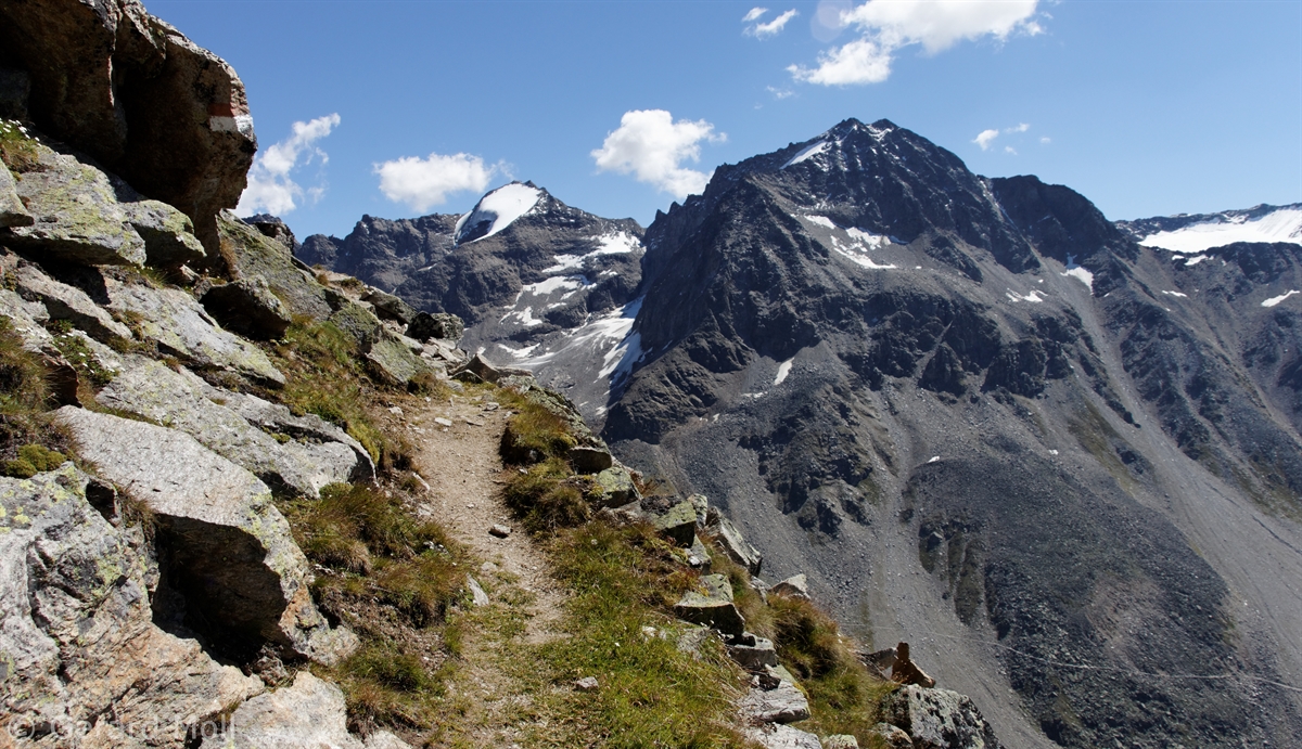 Von Sulden (1910 m) bringt uns ein Fahrweg zur Kälberhütte (2260 m). Von dort geht es dann steiler zum unscheinbaren Vorderen Schöneck (2908 m). Von hier sind es noch einmal über 200 Höhenmeter zum Hinteren Schöneck (3128 m). Geübte können vom Gipfel auch zur Düsseldorfer Hütte absteigen.