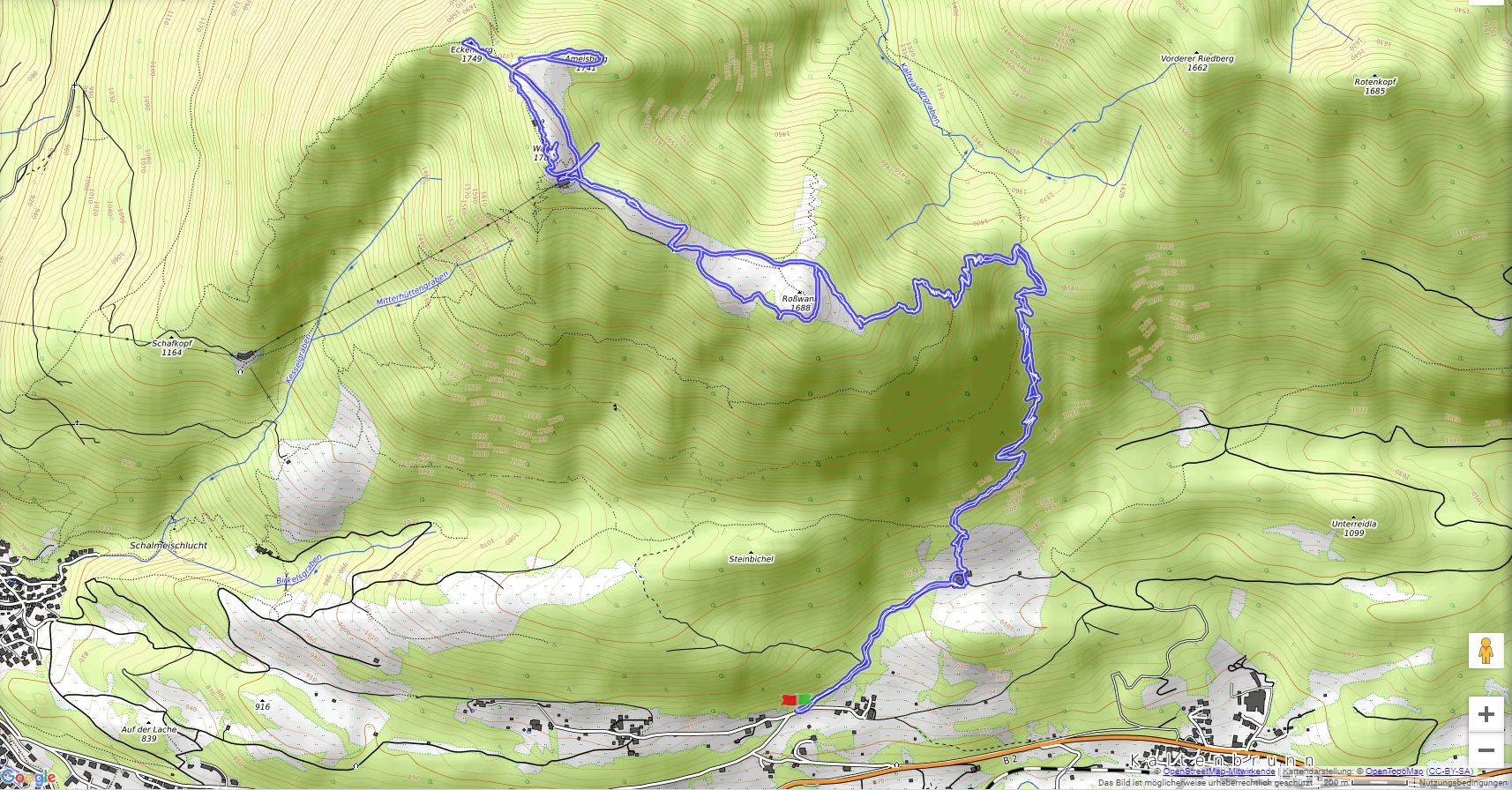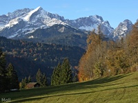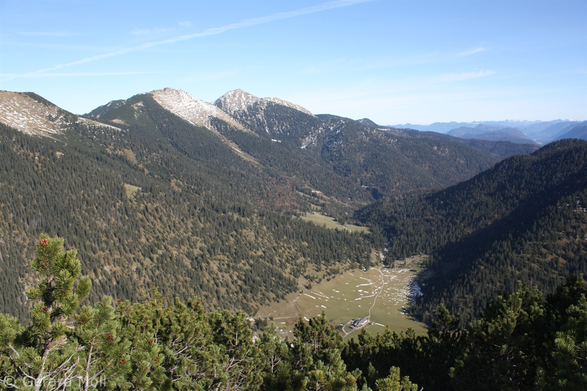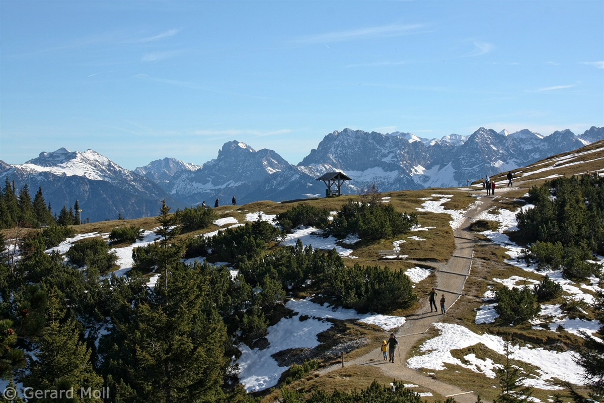 Der Wank (1780 m) ist als einer der Hausberge Garmisch-Partenkirchens mit einer Seilbahn erschlossen. Wir sind vom Parkplatz unterhalb vom Gschwandtnerbauer auf etwa 900 m über den Rosswank (1688 m) zum Gipfel mit Bergstation und Wankhaus aufgestiegen. Für Seilbahnfahrer empfiehlt sich der Abstieg vom Ameisberg (1749 m) zu der Esterbergalm (1264 m) und dann direkt oder, als Wank-Umrundung, an der Hacker-Pschorr-Brücke, der Gamshütte und St. Anton vorbei zur Talstation zu wandern.