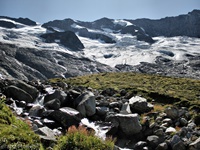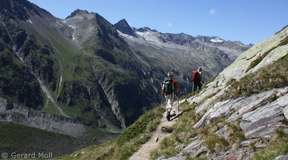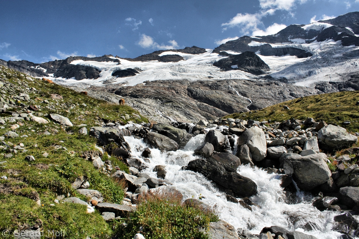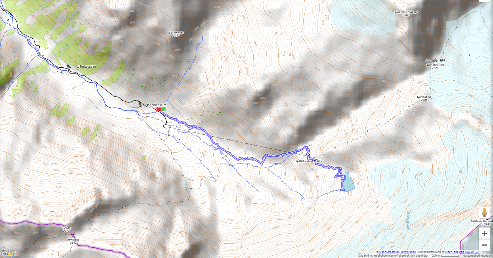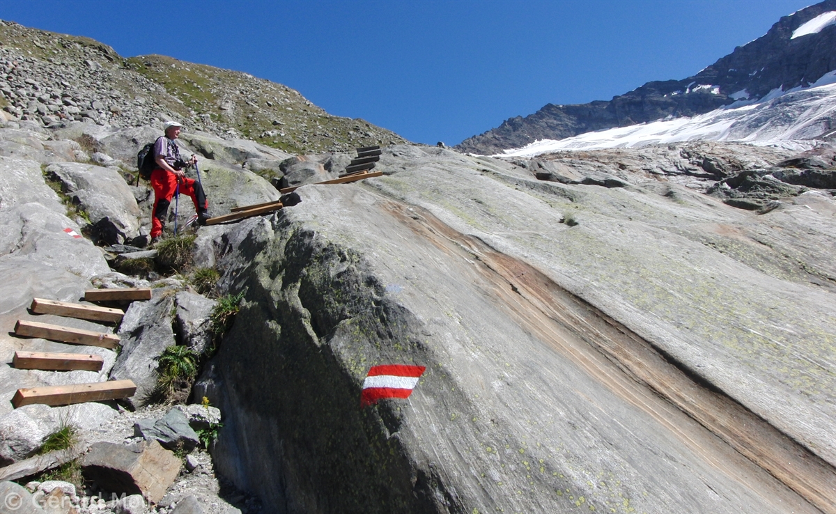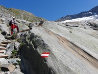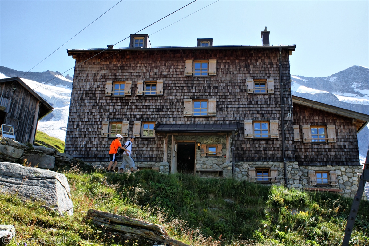 Von Krimml nutzen wir den Taxidienst zur Kesselalm (1810 m) und spazieren auf dem Hüttenweg hinauf zur Warnsdorfer Hütte (2324 m). Von der Hütte lohnt sich der kleine Abstecher zum Eissee am Fuss des Krimmler Keeses.