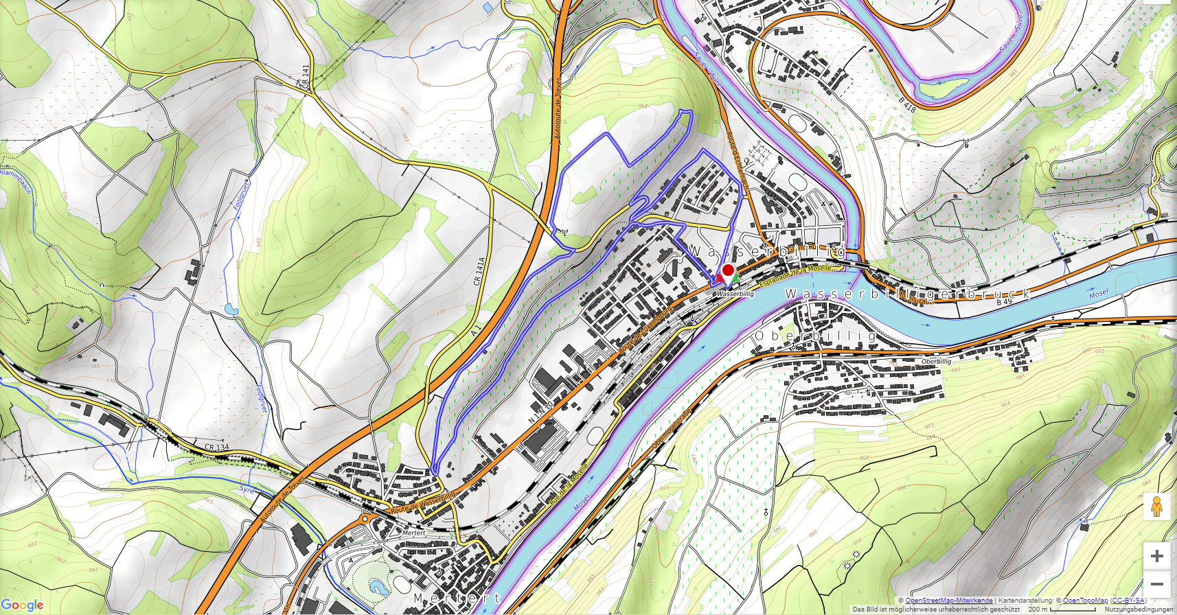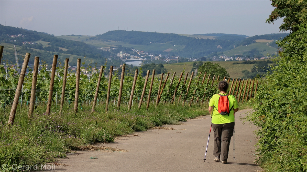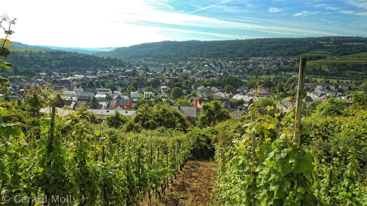 Durch den Ort Wasserbillig geht es in angenehmer Steigung hinauf in die Weinberge und zum Bocksberg. Dann spazieren wir bis fast nach Mertert und kehren durch die Weinberge zurück nach Wasserbillig.